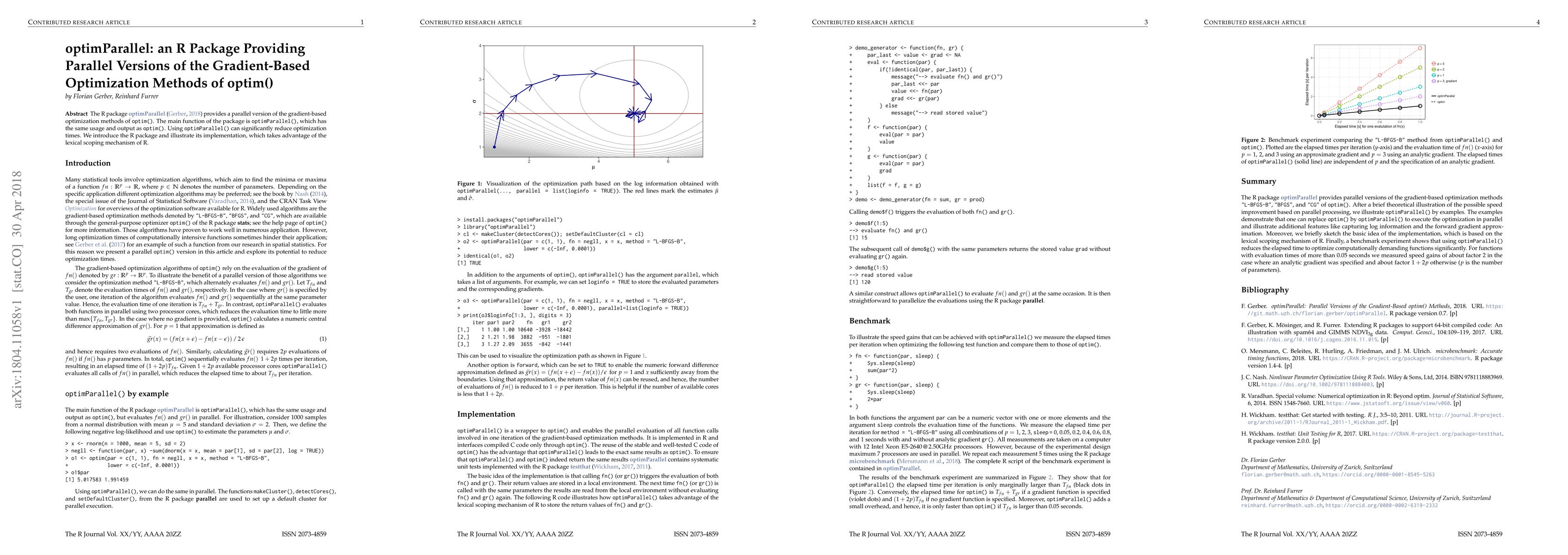 The optimParallel R package speeds up optimization times using parallel gradient-based methods, reducing computational time for tasks like those found in the optim() function.