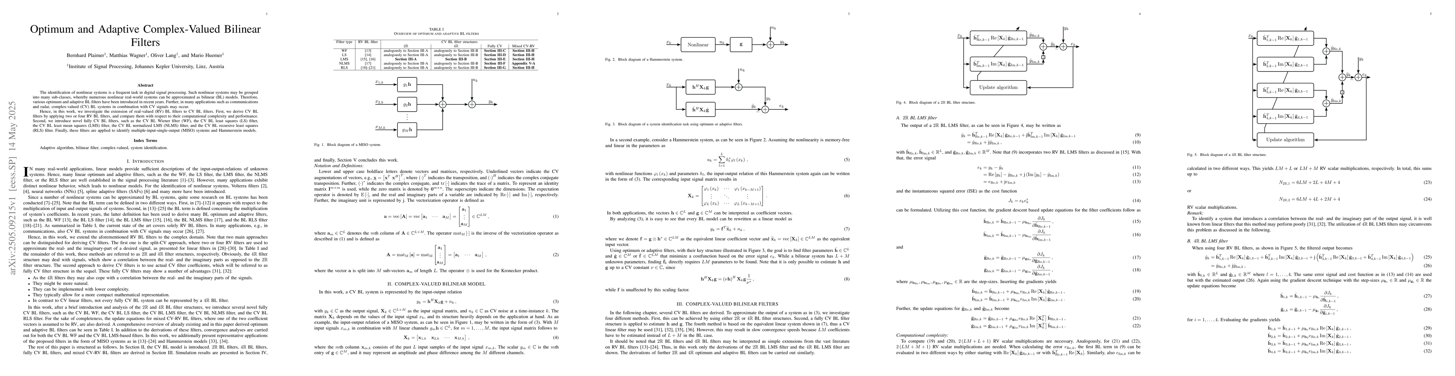 This work stands out by focusing on the extension of real-valued bilinear filters to complex-valued form, presenting a comprehensive set of novel CV BL filters, and applying them to MISO systems and Hammerstein models.