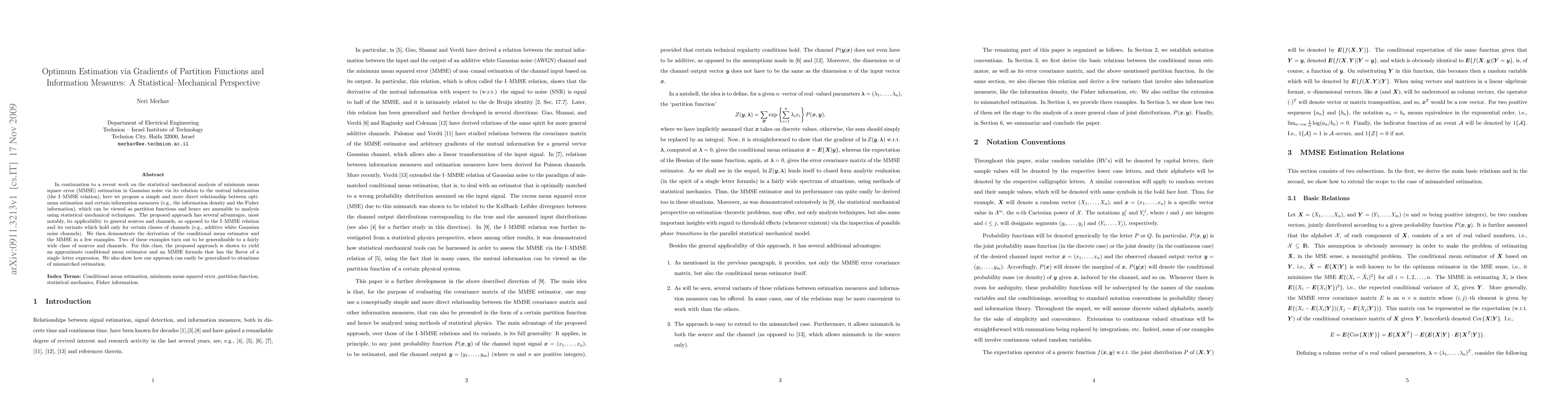 This paper proposes a statistical-mechanical framework for optimum estimation via gradients of information measures, providing a direct link to partition functions. It extends the applicability of minimum mean square error estimation to general sources and channels, offering a single-letter expression for MMSE in a broad class of scenarios.