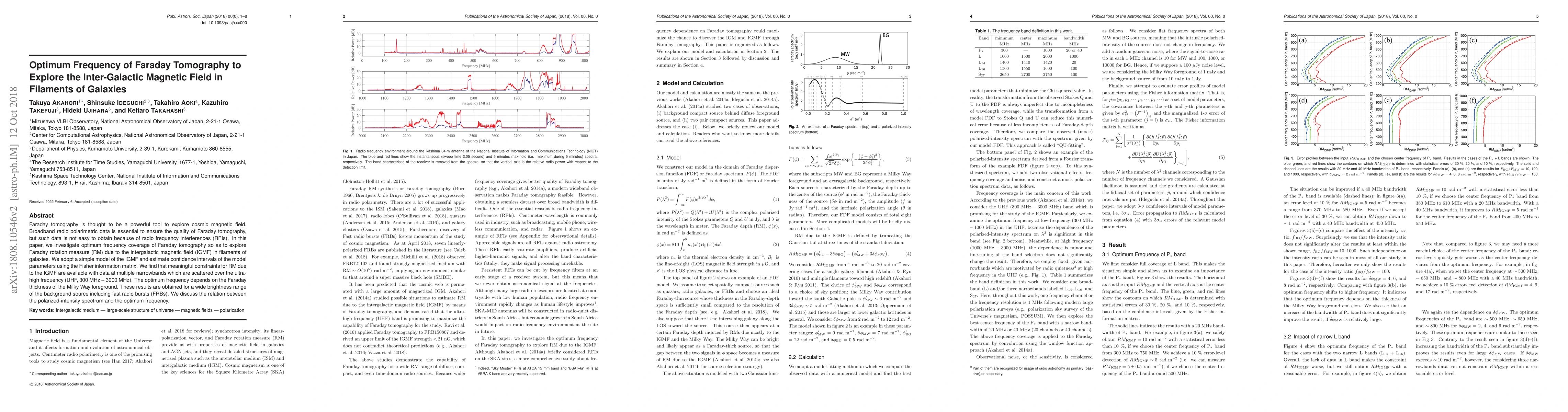 Faraday tomography is thought to be a powerful tool to explore cosmic magnetic field. Broadband radio polarimetric data is essential to ensure the quality of Faraday tomography, but such data is not easy to obtain because of radio frequency interferences (RFIs). In this paper, we investigate optimum frequency coverage of Faraday tomography so as to explore Faraday rotation measure (RM) due to the intergalactic magnetic field (IGMF) in filaments of galaxies. We adopt a simple model of the IGMF and estimate confidence intervals of the model parameters using the Fisher information matrix. We find that meaningful constraints for RM due to the IGMF are available with data at multiple narrowbands which are scattered over the ultra-high frequency (UHF, 300 MHz - 3000 MHz). The optimum frequency depends on the Faraday thickness of the Milky Way foreground. These results are obtained for a wide brightness range of the background source including fast radio bursts (FRBs). We discuss the relation between the polarized-intensity spectrum and the optimum frequency.