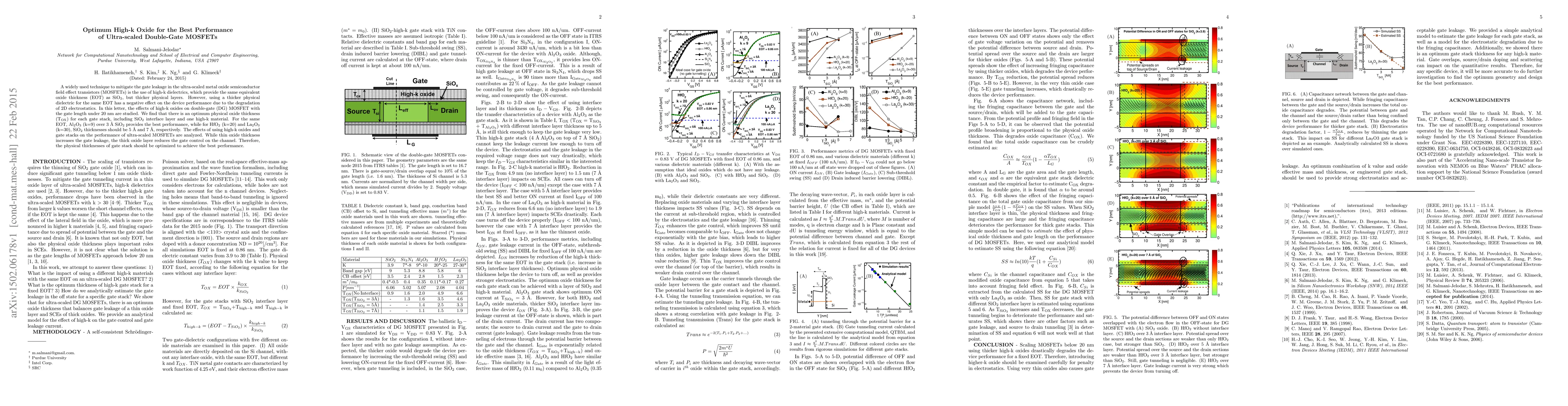 A widely used technique to mitigate the gate leakage in the ultra-scaled metal oxide semiconductor field effect transistors (MOSFETs) is the use of high-k dielectrics, which provide the same equivalent oxide thickness (EOT) as $\rm SiO_2$, but thicker physical layers. However, using a thicker physical dielectric for the same EOT has a negative effect on the device performance due to the degradation of 2D electrostatics. In this letter, the effects of high-k oxides on double-gate (DG) MOSFET with the gate length under 20 nm are studied. We find that there is an optimum physical oxide thickness ($\rm T_{OX}$) for each gate stack, including $\rm SiO_2$ interface layer and one high-k material. For the same EOT, $\rm Al_2O_3$ (k=9) over 3 $\rm\AA$ $\rm SiO_2$ provides the best performance, while for $\rm HfO_2$ (k=20) and $\rm La_2O_3$ (k=30), $\rm SiO_2$ thicknesses should be 5 $\rm\AA$ and 7 $\rm\AA$, respectively. The effects of using high-k oxides and gate stacks on the performance of ultra-scaled MOSFETs are analyzed. While thin oxide thickness increases the gate leakage, the thick oxide layer reduces the gate control on the channel. Therefore, the physical thicknesses of gate stack should be optimized to achieve the best performance.
