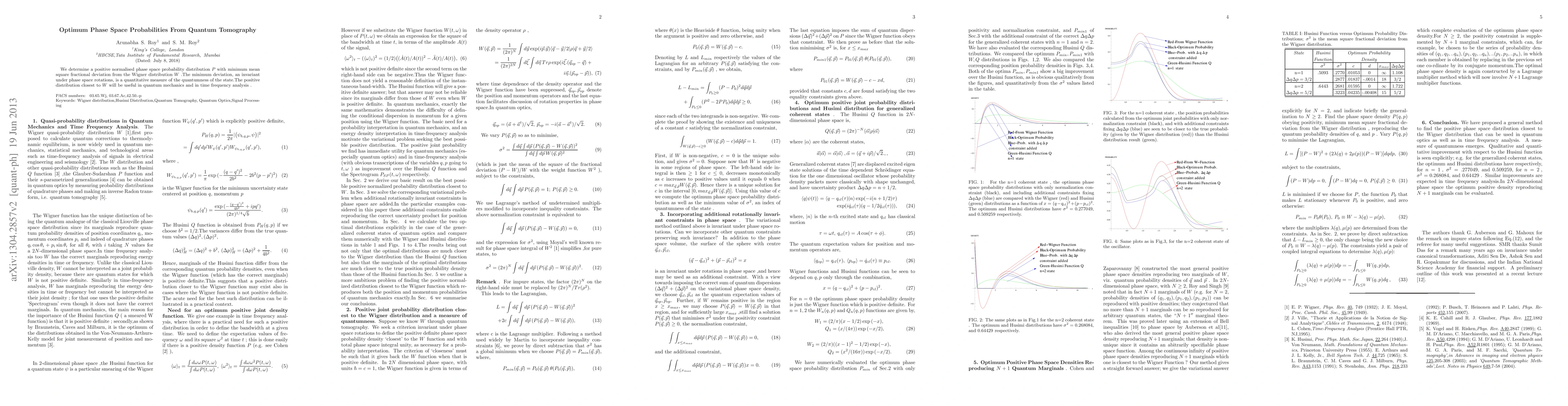 This research paper aims to find a quantum state with the minimum difference in probability distribution from the Wigner function, providing a measure of quantumness. It proposes a positive normalized phase space probability distribution closest to the Wigner function.