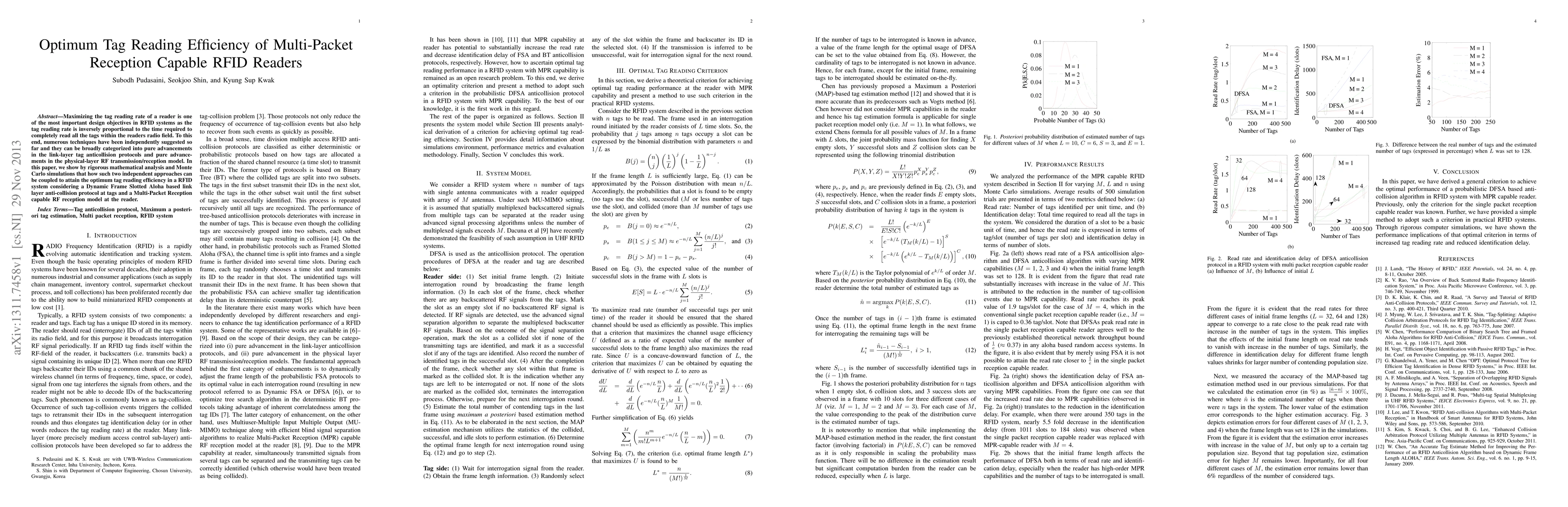 Maximizing the tag reading rate of a reader is one of the most important design objectives in RFID systems as the tag reading rate is inversely proportional to the time required to completely read all the tags within the reader's radio field. To this end, numerous techniques have been independently suggested so far and they can be broadly categorized into pure advancements in the link-layer tag anti-collision protocols and pure advancements in the physical-layer RF transmission/reception model. In this paper, we show by rigorous mathematical analysis and Monte Carlo simulations that how such two independent approaches can be coupled to attain the optimum tag reading efficiency in a RFID system considering a Dynamic Frame Slotted Aloha based link layer anti-collision protocol at tags and a Multi-Packet Reception capable RF reception model at the reader.
