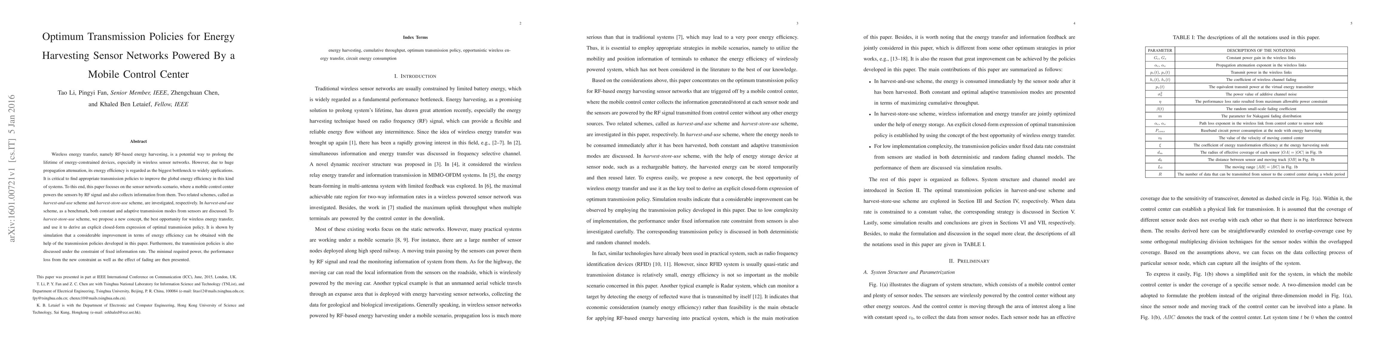 This paper investigates optimum transmission policies for energy harvesting sensor networks powered by a mobile control center using RF-based wireless energy transfer. It proposes adaptive transmission policies for both harvest-and-use and harvest-store-use schemes, demonstrating significant improvements in energy efficiency through simulations.