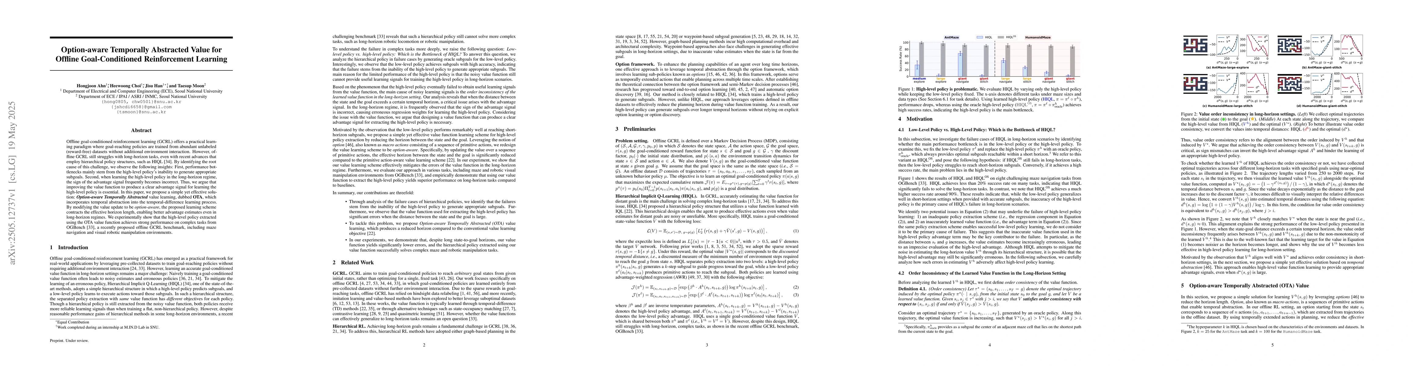 Researchers propose a new value learning method called Option-aware Temporally Abstracted value (OTA) to improve offline goal-conditioned reinforcement learning in long-horizon tasks, achieving strong performance on complex tasks.