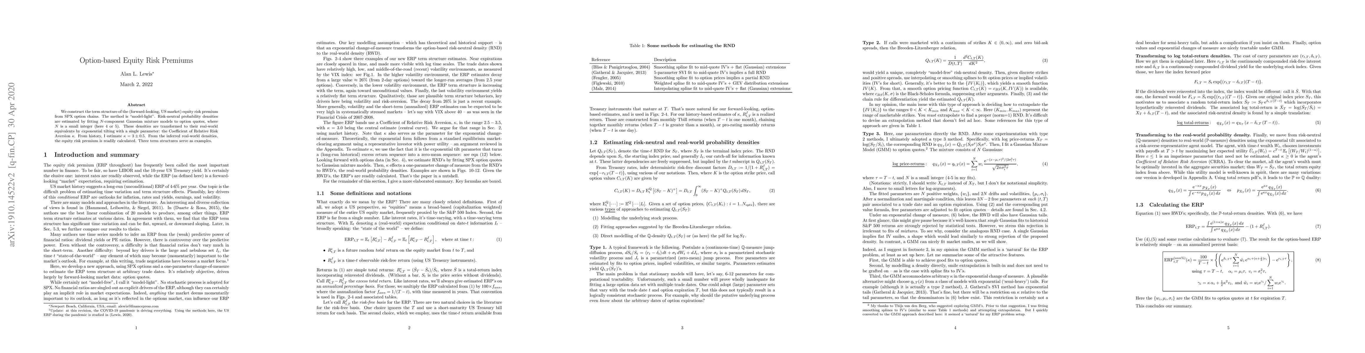 This paper constructs the term structure of the equity risk premium using SPX option chains through a "model-light" approach, estimating risk-neutral densities via Gaussian mixture models and transforming them to real-world densities using the Coefficient of Relative Risk Aversion. The equity risk premium is calculated from these densities, with $\kappa = 3 \pm 0.5$ derived from historical data.
