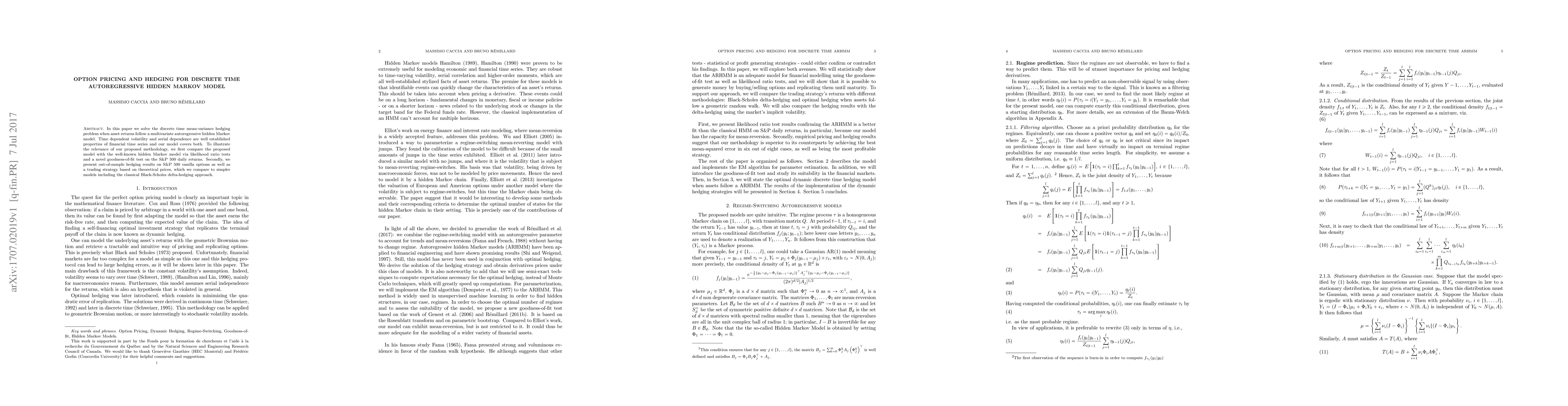 In this paper we solve the discrete time mean-variance hedging problem when asset returns follow a multivariate autoregressive hidden Markov model. Time dependent volatility and serial dependence are well established properties of financial time series and our model covers both. To illustrate the relevance of our proposed methodology, we first compare the proposed model with the well-known hidden Markov model via likelihood ratio tests and a novel goodness-of-fit test on the S\&P 500 daily returns. Secondly, we present out-of-sample hedging results on S\&P 500 vanilla options as well as a trading strategy based on theoretical prices, which we compare to simpler models including the classical Black-Scholes delta-hedging approach.