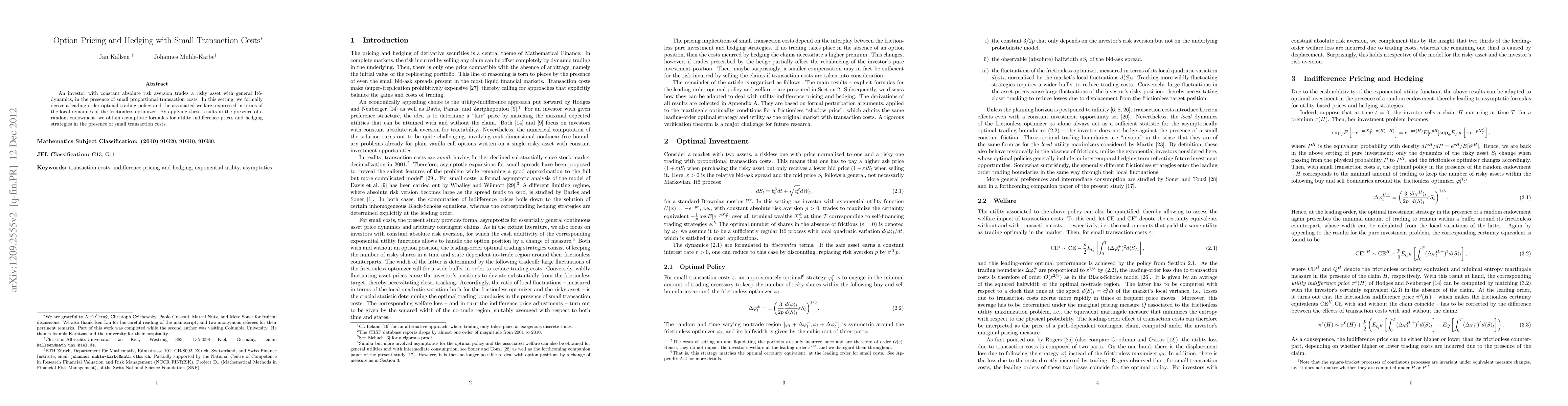 This paper finds that small transaction costs lead to a suboptimal trading policy for investors with constant absolute risk aversion, but it provides asymptotic formulas for utility indifference prices and hedging strategies in the presence of such costs.
