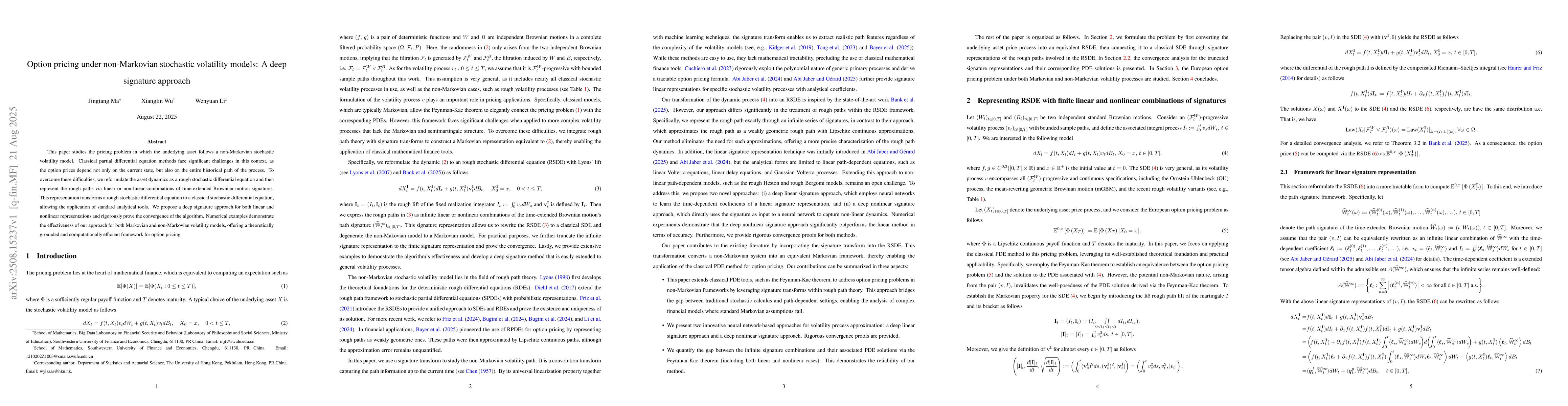 This paper studies the pricing problem in which the underlying asset follows a non-Markovian stochastic volatility model. Classical partial differential equation methods face significant challenges in this context, as the option prices depend not only on the current state, but also on the entire historical path of the process. To overcome these difficulties, we reformulate the asset dynamics as a rough stochastic differential equation and then represent the rough paths via linear or non-linear combinations of time-extended Brownian motion signatures. This representation transforms a rough stochastic differential equation to a classical stochastic differential equation, allowing the application of standard analytical tools. We propose a deep signature approach for both linear and nonlinear representations and rigorously prove the convergence of the algorithm. Numerical examples demonstrate the effectiveness of our approach for both Markovian and non-Markovian volatility models, offering a theoretically grounded and computationally efficient framework for option pricing.
