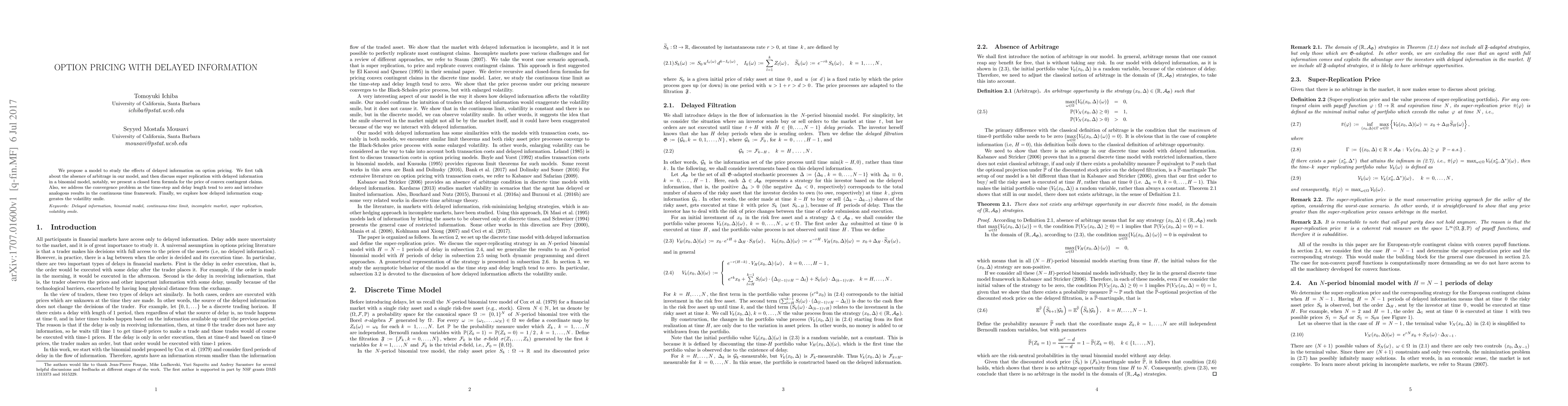 We propose a model to study the effects of delayed information on option pricing. We first talk about the absence of arbitrage in our model, and then discuss super replication with delayed information in a binomial model, notably, we present a closed form formula for the price of convex contingent claims. Also, we address the convergence problem as the time-step and delay length tend to zero and introduce analogous results in the continuous time framework. Finally, we explore how delayed information exaggerates the volatility smile.