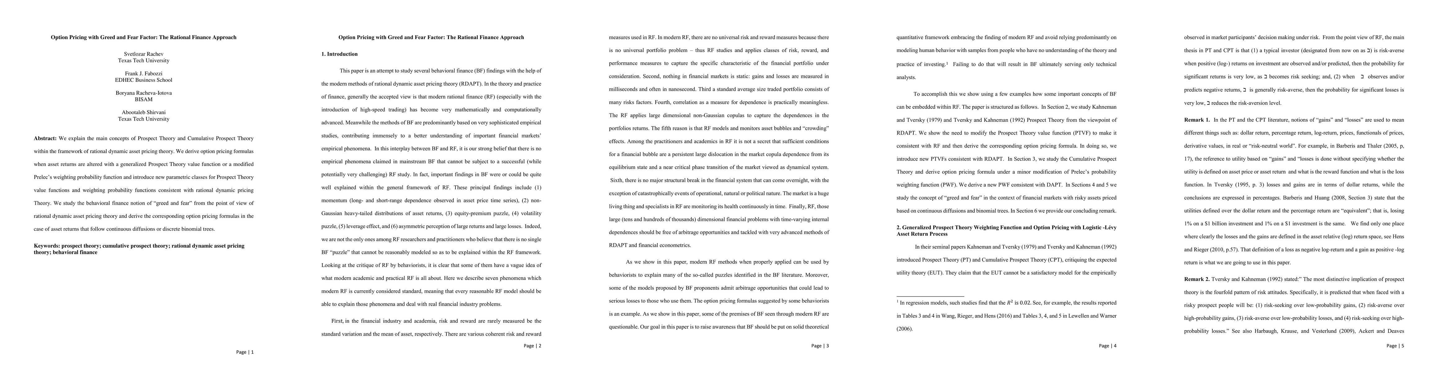 We explain the main concepts of Prospect Theory and Cumulative Prospect Theory within the framework of rational dynamic asset pricing theory. We derive option pricing formulas when asset returns are altered with a generalized Prospect Theory value function or a modified Prelec weighting probability function and introduce new parametric classes for Prospect Theory value functions and weighting probability functions consistent with rational dynamic pricing Theory. We study the behavioral finance notion of greed and fear from the point of view of rational dynamic asset pricing theory and derive the corresponding option pricing formulas in the case of asset returns that follow continuous diffusion or discrete binomial trees.
