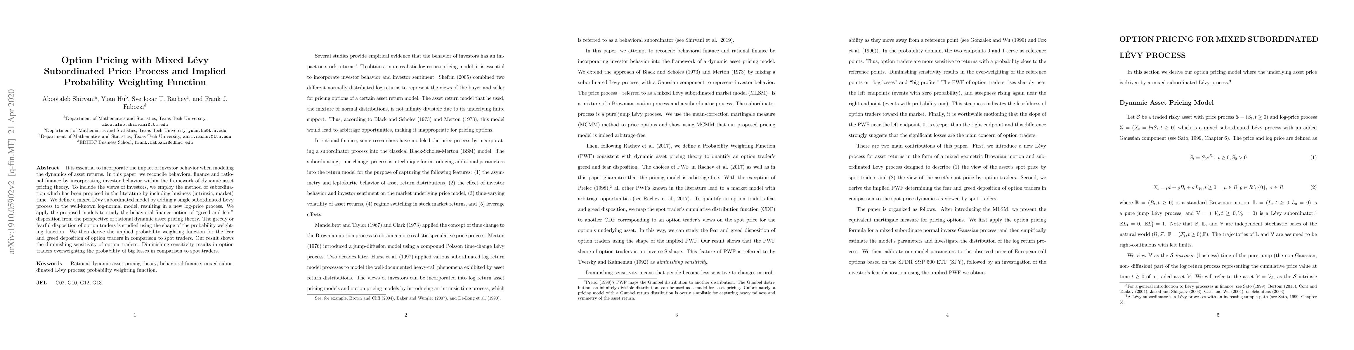 This paper integrates behavioral finance into dynamic asset pricing by using a mixed Lévy subordinated model, which combines a Lévy process with a log-normal model to reflect investor behavior. The study examines the "greed and fear" disposition of option traders through the implied probability weighting function, revealing that option traders exhibit diminishing sensitivity and overweight the probability of significant losses compared to spot traders.