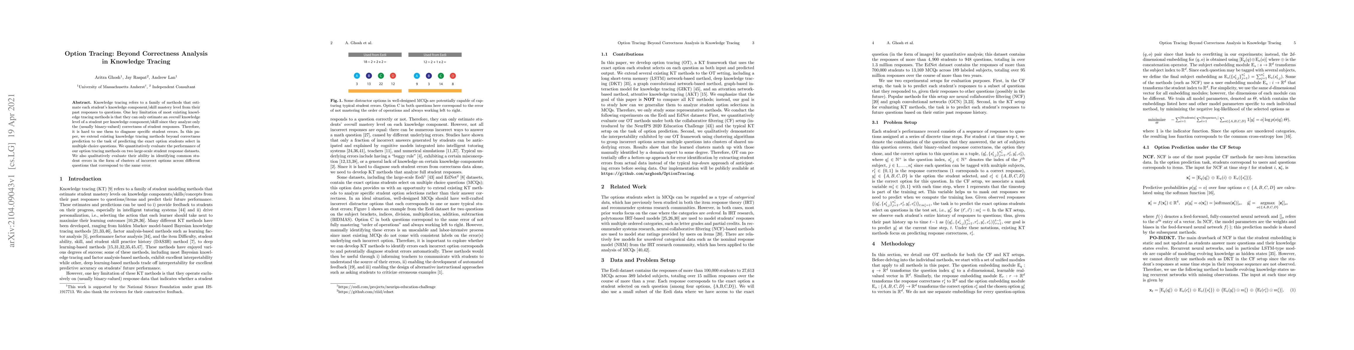 This paper proposes an extension to knowledge tracing methods that predicts the specific options students select in multiple choice questions, aiming to diagnose specific student errors beyond overall correctness analysis. The new "option tracing" methods are evaluated on large datasets, showing their potential to identify common student mistakes through clusters of incorrect options.
