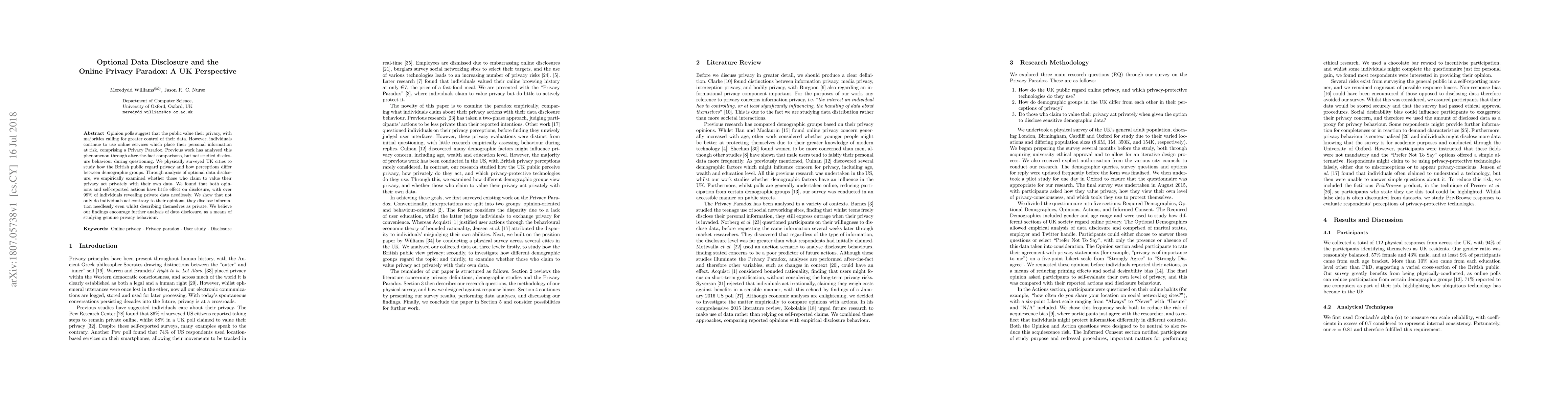 Opinion polls suggest that the public value their privacy, with majorities calling for greater control of their data. However, individuals continue to use online services which place their personal information at risk, comprising a Privacy Paradox. Previous work has analysed this phenomenon through after-the-fact comparisons, but not studied disclosure behaviour during questioning. We physically surveyed UK cities to study how the British public regard privacy and how perceptions differ between demographic groups. Through analysis of optional data disclosure, we empirically examined whether those who claim to value their privacy act privately with their own data. We found that both opinions and self-reported actions have little effect on disclosure, with over 99\% of individuals revealing private data needlessly. We show that not only do individuals act contrary to their opinions, they disclose information needlessly even whilst describing themselves as private. We believe our findings encourage further analysis of data disclosure, as a means of studying genuine privacy behaviour.