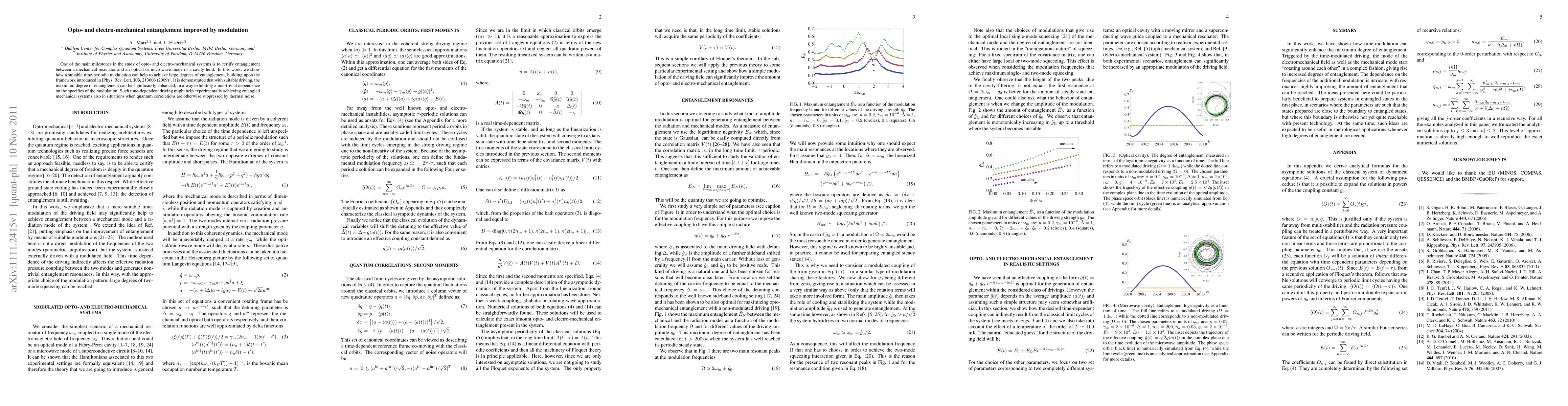 One of the main milestones in the study of opto- and electro-mechanical systems is to certify entanglement between a mechanical resonator and an optical or microwave mode of a cavity field. In this work, we show how a suitable time-periodic modulation can help to achieve large degrees of entanglement, building upon the framework introduced in [Phys. Rev. Lett. 103, 213603 (2009)]. It is demonstrated that with suitable driving, the maximum degree of entanglement can be significantly enhanced, in a way exhibiting a non-trivial dependence on the specifics of the modulation. Such time-dependent driving might help experimentally achieving entangled mechanical systems also in situations when quantum correlations are otherwise suppressed by thermal noise.