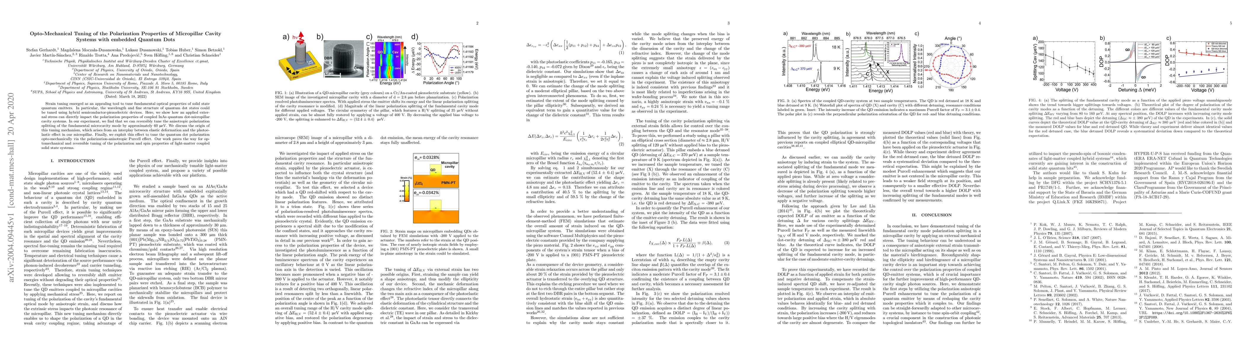 Strain tuning emerged as an appealing tool to tune fundamental optical properties of solid state quantum emitters. In particular, the wavelength and fine structure of quantum dot states could be tuned using hybrid semiconductor-piezoelectric devices. Here, we show how an applied external stress can directly impact the polarization properties of coupled InAs quantum dot-micropillar cavity systems. In our experiment, we find that we can reversibly tune the anisotropic polarization splitting of the fundamental microcavity mode by approximately 60 $\mu\text{eV}$. We discuss the origin of this tuning mechanism, which arises from an interplay between elastic deformation and the photoelastic effect in our micropillar. Finally, we exploit this effect to tune the quantum dot polarization opto-mechanically via the polarization-anisotropic Purcell effect. Our work paves the way for optomechanical and reversible tuning of the polarization and spin properties of light-matter coupled solid state systems.