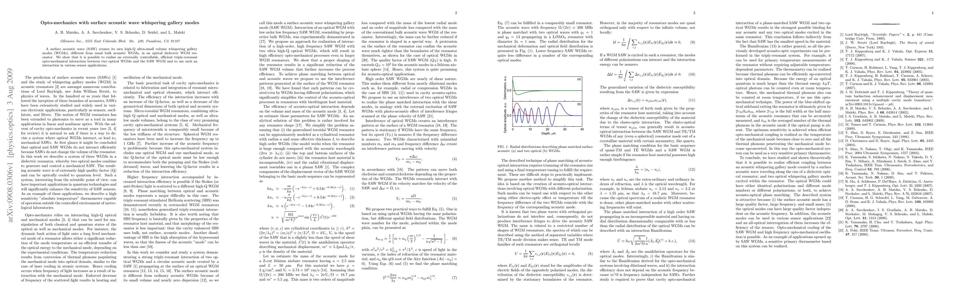 This paper explores the interaction between surface acoustic waves (SAWs) and optical whispering gallery modes (WGMs) in dielectric resonators, demonstrating a controllable, efficient triply-resonant opto-mechanical interaction that can be applied in sensor technologies.