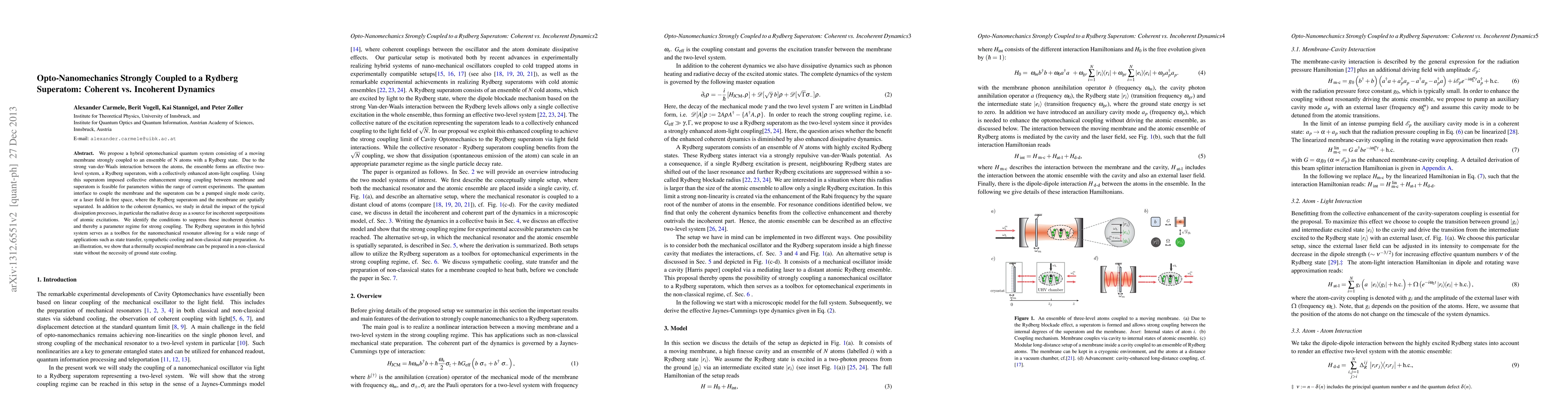 This paper proposes a hybrid optomechanical quantum system where a moving membrane is strongly coupled to a Rydberg superatom, an ensemble of Rydberg atoms forming an effective two-level system. The study explores both coherent and incoherent dynamics, identifying conditions to suppress incoherent dynamics for strong coupling, and suggests applications like state transfer and non-classical state preparation.