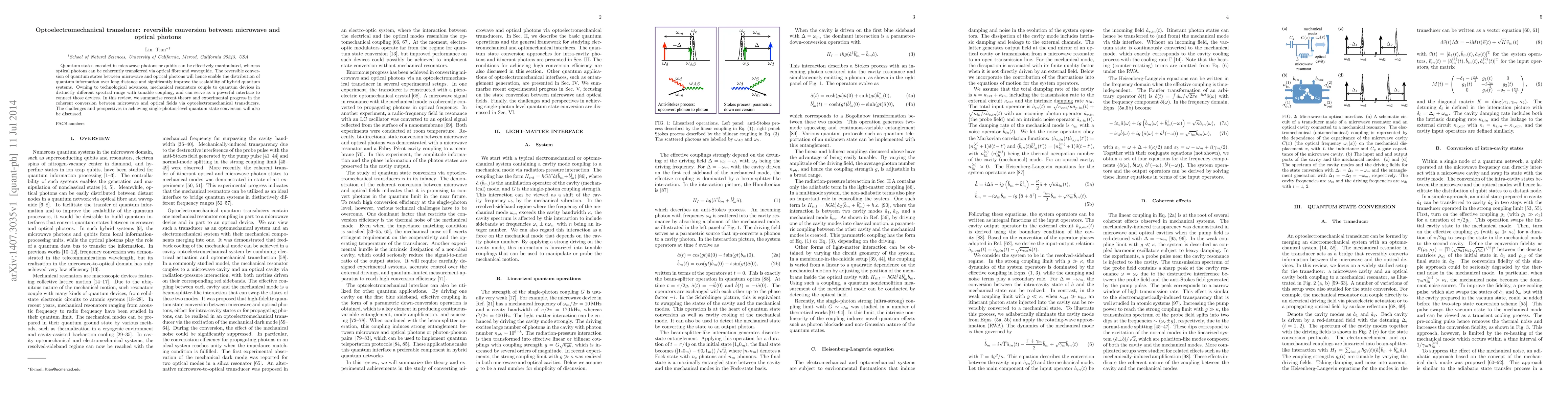 This paper reviews recent advancements in optoelectromechanical transducers that enable reversible conversion between microwave and optical photons, crucial for long-distance quantum information distribution and hybrid quantum systems' scalability. It discusses theoretical and experimental progress, challenges, and future prospects for single-photon-level quantum state conversion.