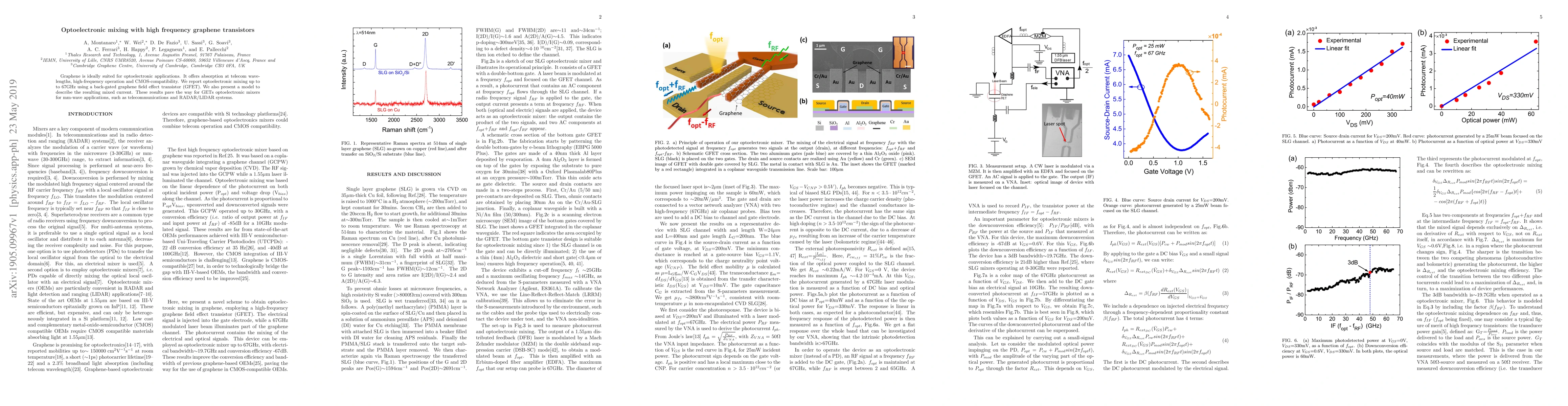 This research demonstrates the use of graphene transistors for optoelectronic mixing at high frequencies up to 67GHz. The study presents a model for the resulting mixed current, suggesting potential for graphene transistors in mm-wave applications like telecommunications and RADAR/LIDAR systems.