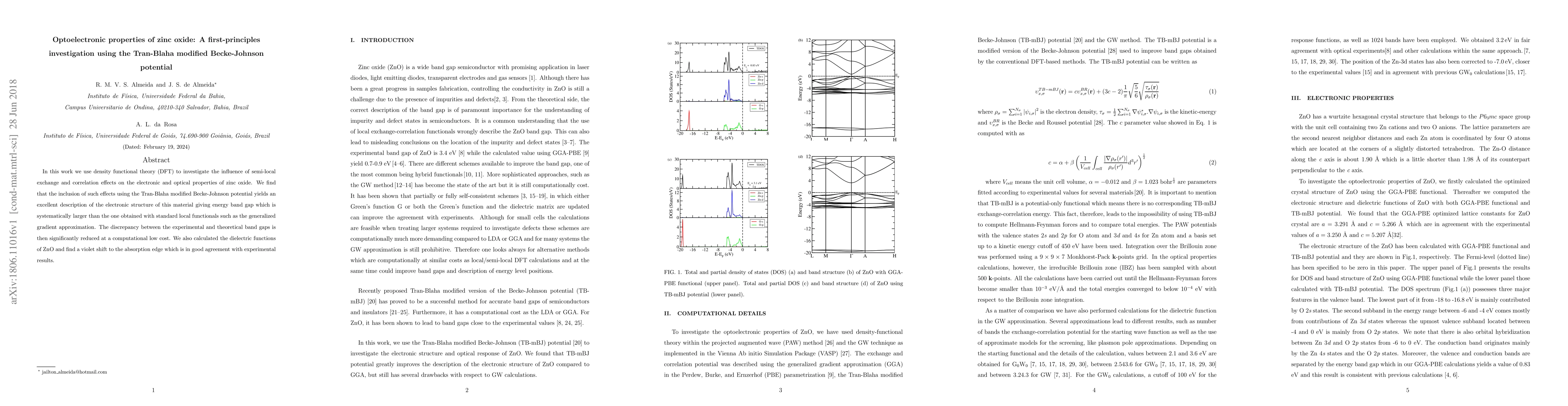 The main technical contribution is the application of semilocal exchange-correlation potentials and the GW0 method to investigate the electronic and optical properties of zinc oxide.