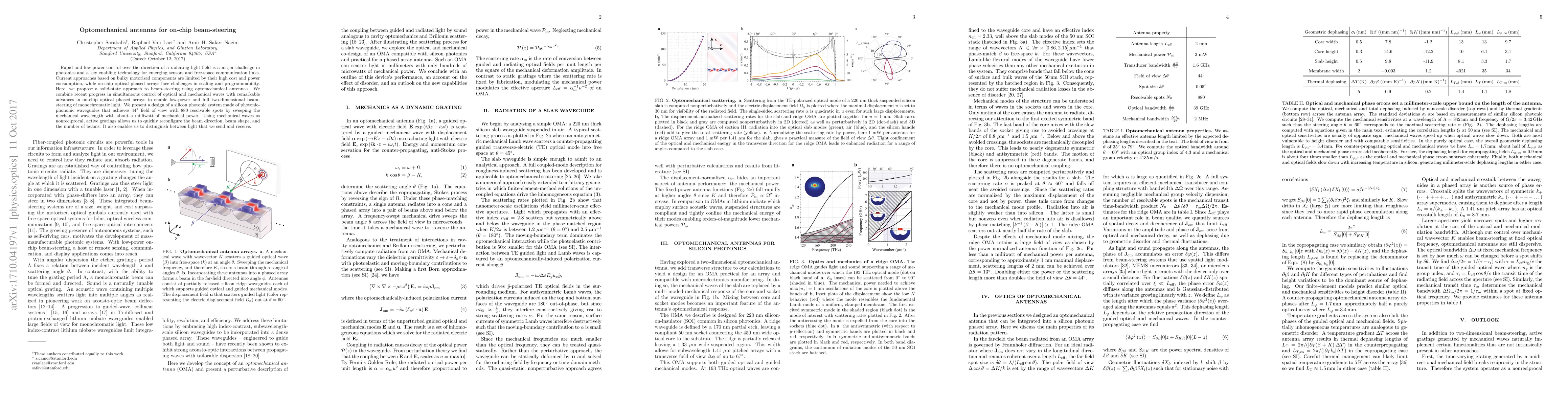 This paper proposes a low-power optomechanical antenna system for on-chip beam-steering, combining photonic-phononic waveguides with mechanical waves to achieve 44$^{\circ}$ field of view and 880 resolvable spots, addressing scalability and programmability issues in photonics.