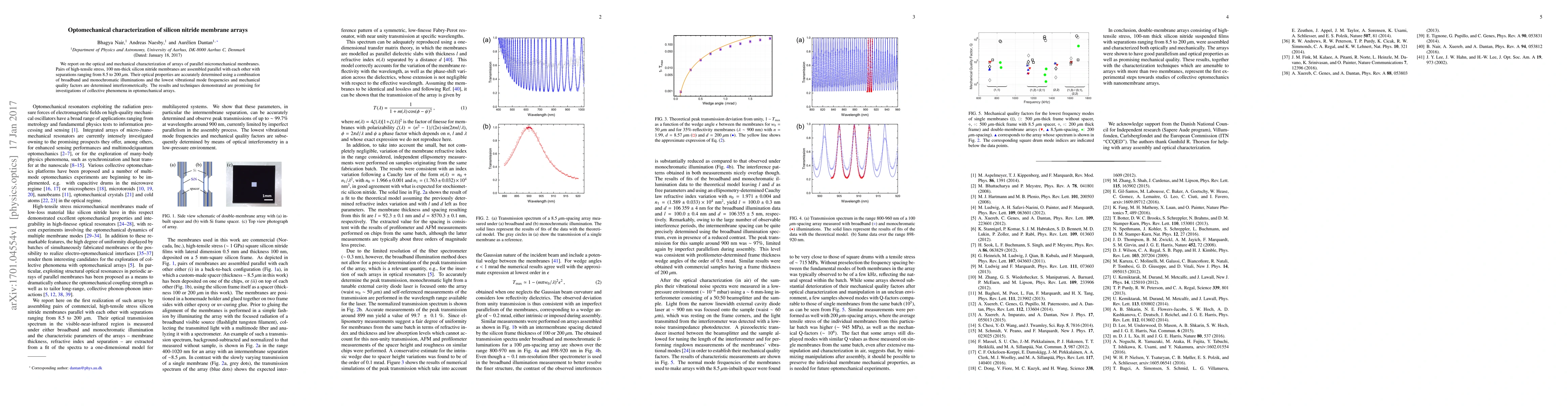 This study characterizes arrays of parallel silicon nitride membranes, determining their optical properties and mechanical quality factors using interferometry. The findings are significant for exploring collective optomechanical behaviors in such membrane systems.