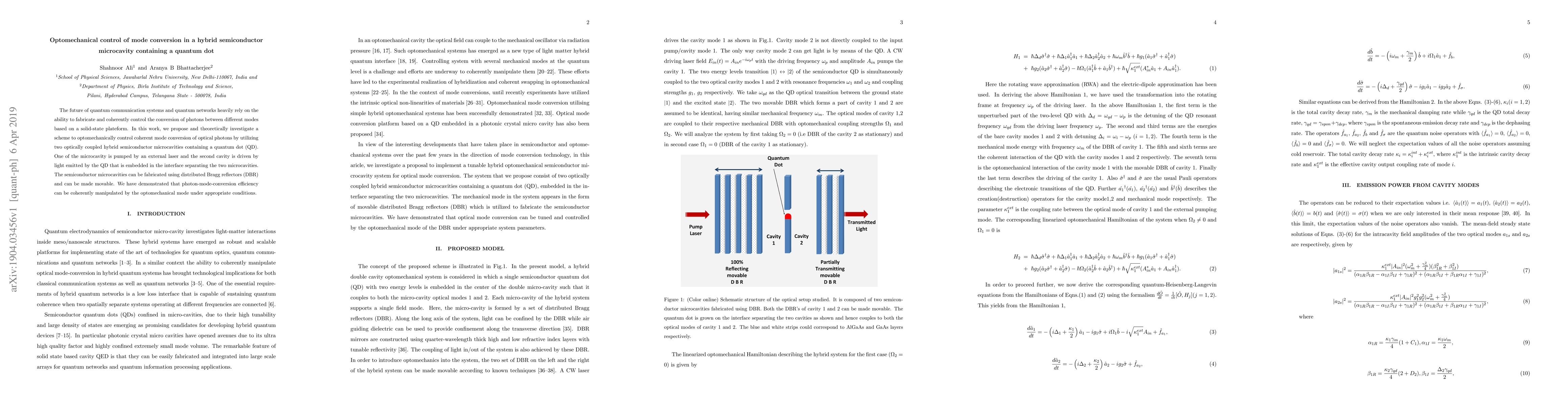 The future of quantum communication systems and quantum networks heavily rely on the ability to fabricate and coherently control the conversion of photons between different modes based on a solid-state plateform. In this work, we propose and theoretically investigate a scheme to optomechanically control coherent mode conversion of optical photons by utilizing two optically coupled hybrid semiconductor microcavities containing a quantum dot (QD). One of the microcavity is pumped by an external laser and the second cavity is driven by light emitted by the QD that is embedded in the interface separating the two microcavities. The semiconductor microcavities can be fabricated using distributed Bragg reflectors (DBR) and can be made movable. We have demonstrated that photon-mode-conversion efficiency can be coherently manipulated by the optomechanical mode under appropriate conditions.