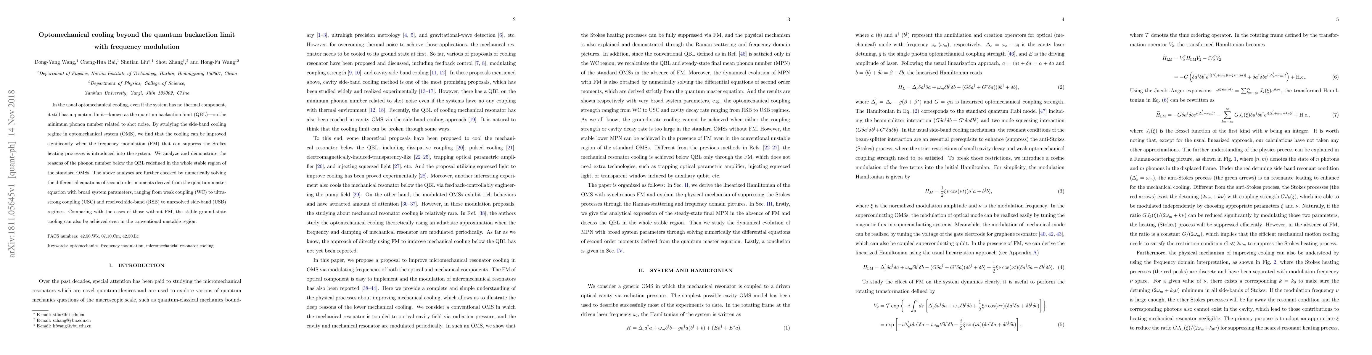 This research introduces frequency modulation into optomechanical systems to surpass the conventional quantum backaction limit, enhancing cooling efficiency. Numerical simulations confirm stable ground-state cooling even in unstable regions, opening new possibilities for optomechanical applications.