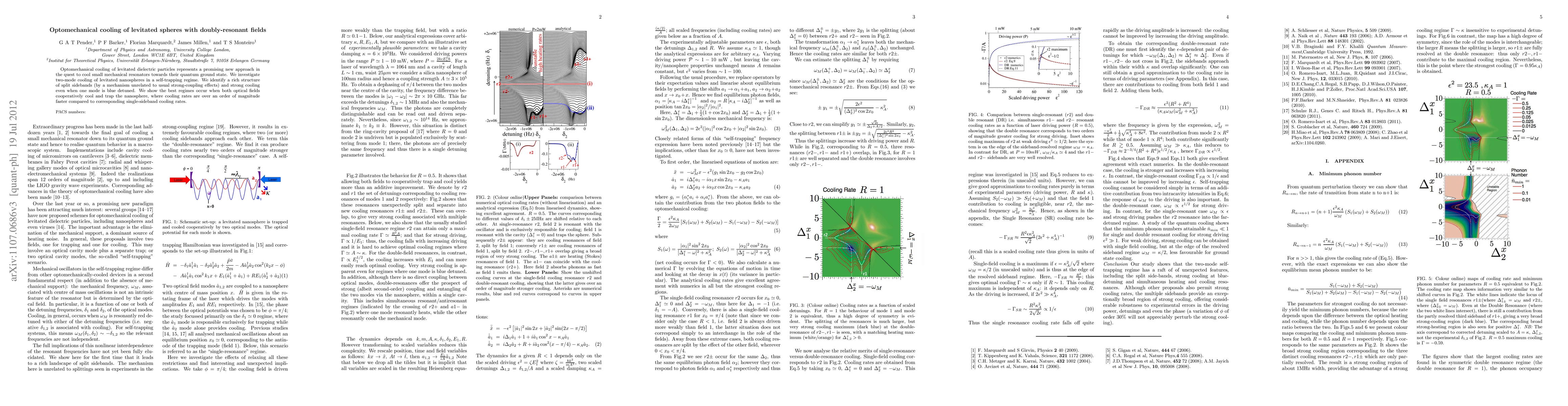 This paper explores optomechanical cooling of levitated nanospheres using doubly-resonant fields, demonstrating significant cooling rates and a complex sideband structure in a self-trapping regime, achieving over an order of magnitude faster cooling compared to single-sideband methods.