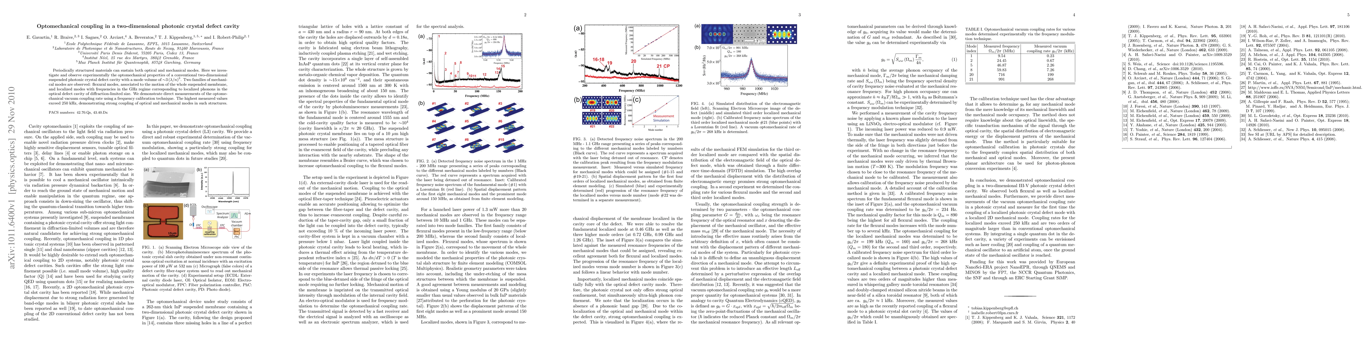 This research investigates the optomechanical coupling in a two-dimensional photonic crystal defect cavity, observing flexural and localized mechanical modes, and demonstrates strong optomechanical coupling rates exceeding 250 kHz.