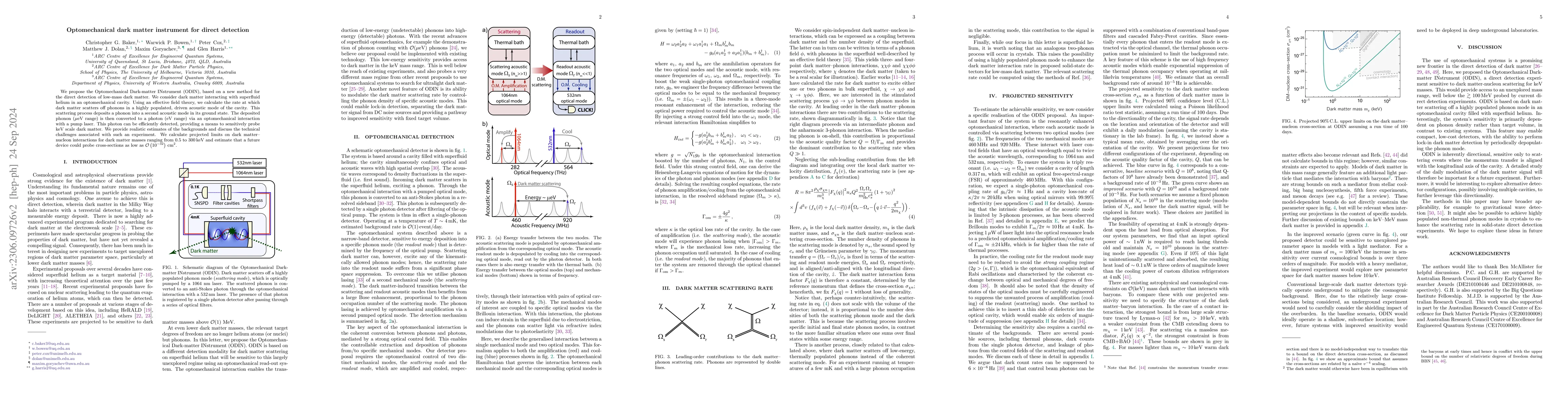 The paper proposes the Optomechanical Dark-matter INstrument (ODIN) for detecting low-mass dark matter through its interaction with superfluid helium in an optomechanical cavity. The method involves converting phonons generated by dark matter scattering into detectable photons, aiming to probe keV scale dark matter with unprecedented sensitivity.