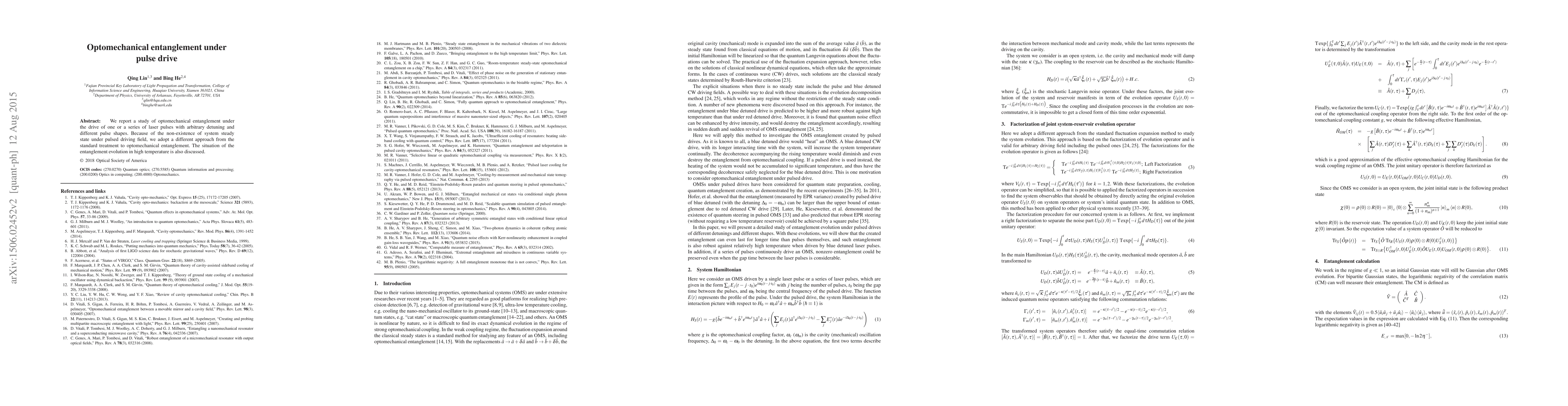 This study investigates optomechanical entanglement generated by laser pulses with varying detuning and shapes, employing an alternative approach due to the absence of a steady state under pulsed driving. The research also explores the effects of high temperatures on entanglement evolution.