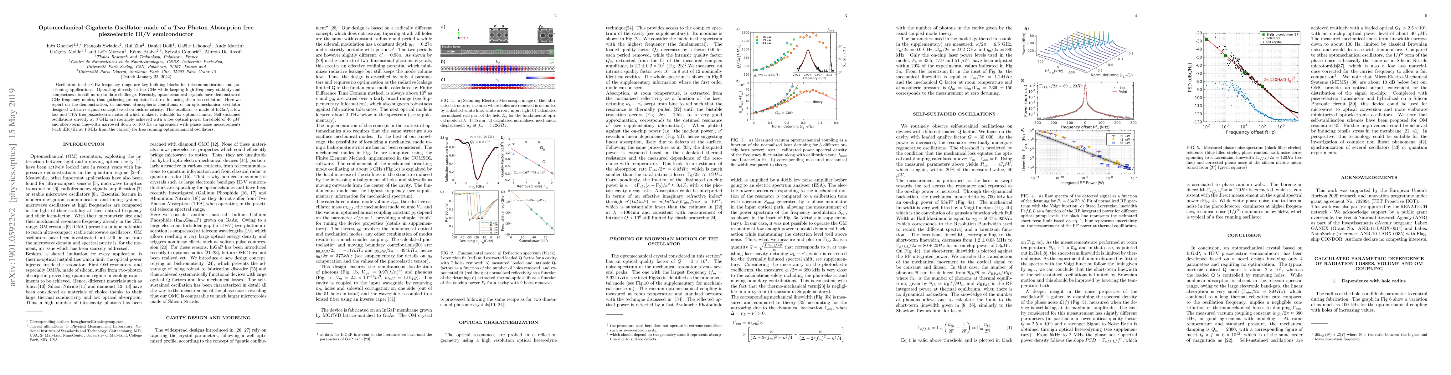 Oscillators in the GHz frequency range are key building blocks for telecommunication, timing and positioning applications. Operating directly in the GHz and compactness while keeping high frequency stability, is still an up-to-date challenge. Recently, optomechanical crystals, compact by nature, have demonstrated GHz frequency modes, thus gathering prerequisite features for using them as oscillators. Here we report on the demonstration, in ambient atmospheric conditions, of an optomechanical oscillator designed with an original concept based on bichromatic one-dimensional optomechanical crystal. Self sustained oscillations directly at 3 GHz are routinely achieved with a low optical power threshold of 40 $\mu W$ and short-term linewidth narrowed down to 100 Hz in agreement with phase noise measurements (-113 dBc/Hz at 1 MHz from the carrier) for free running optomechanical oscillators. This oscillator is made of InGaP, low loss and TPA-free piezoelectric material which makes it valuable for optomechanics.