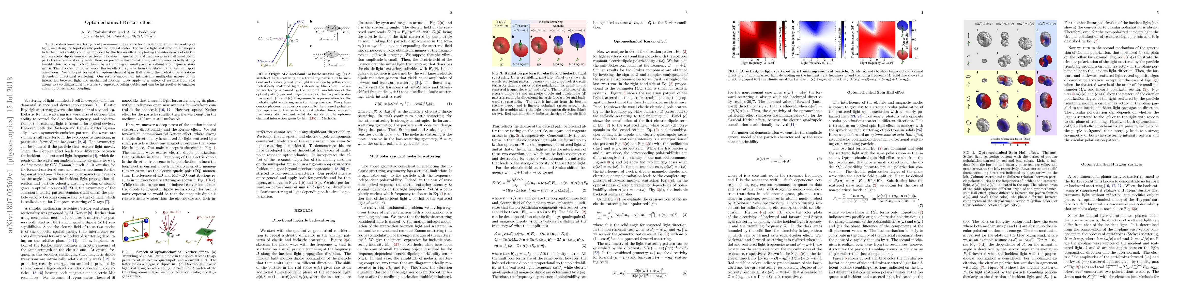 This research predicts strong tunable directional scattering via the optomechanical Kerker effect in small particles driven by their vibrations, without requiring magnetic resonances. The study also introduces an optomechanical spin Hall effect, revealing the multipolar interaction between light and mechanical motion applicable across various systems.