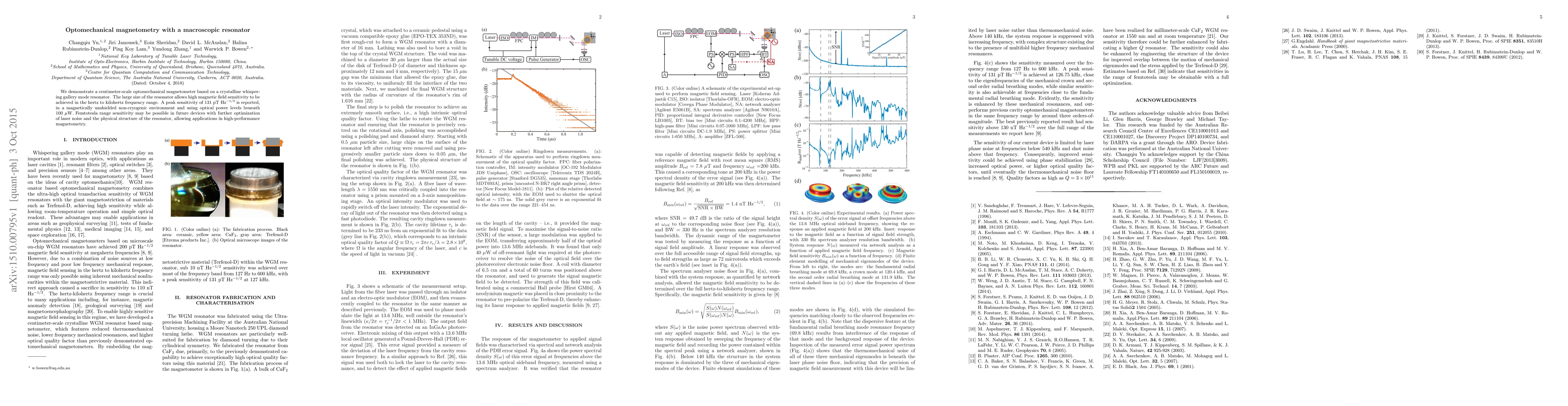 This paper presents a centimeter-scale optomechanical magnetometer utilizing a crystalline whispering gallery mode resonator, achieving high magnetic field sensitivity in the hertz to kilohertz range with a peak sensitivity of 131 pT per root Hz. Future optimizations could push sensitivity into the femtotesla range, enabling advanced magnetometry applications.