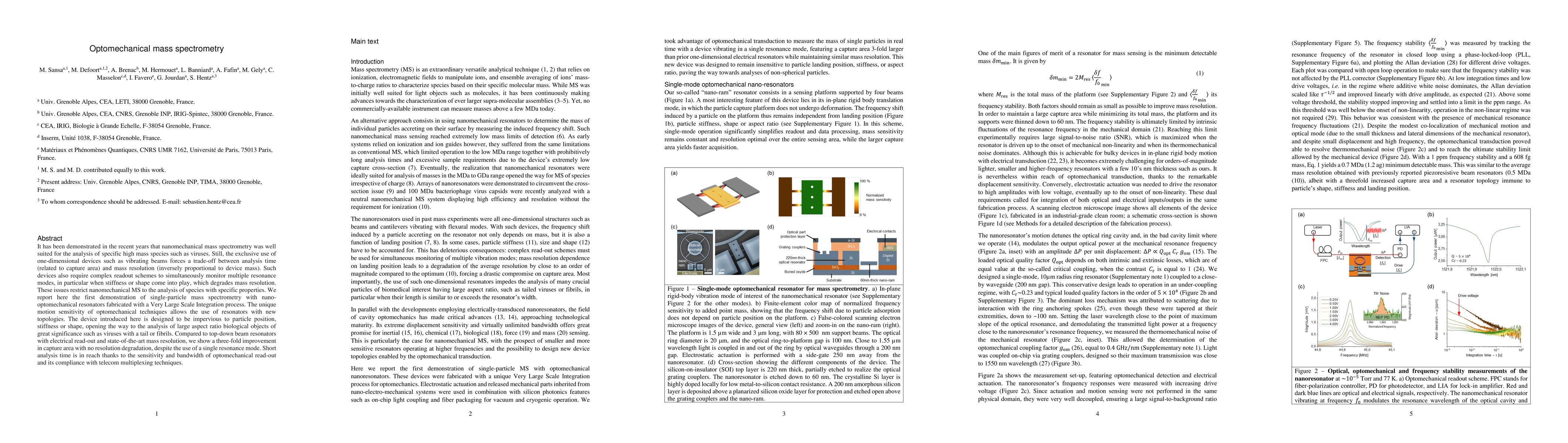 The research utilized nano-optomechanical resonators fabricated via a Very Large Scale Integration process, demonstrating single-particle mass spectrometry with improved capture area and mass resolution compared to traditional methods.