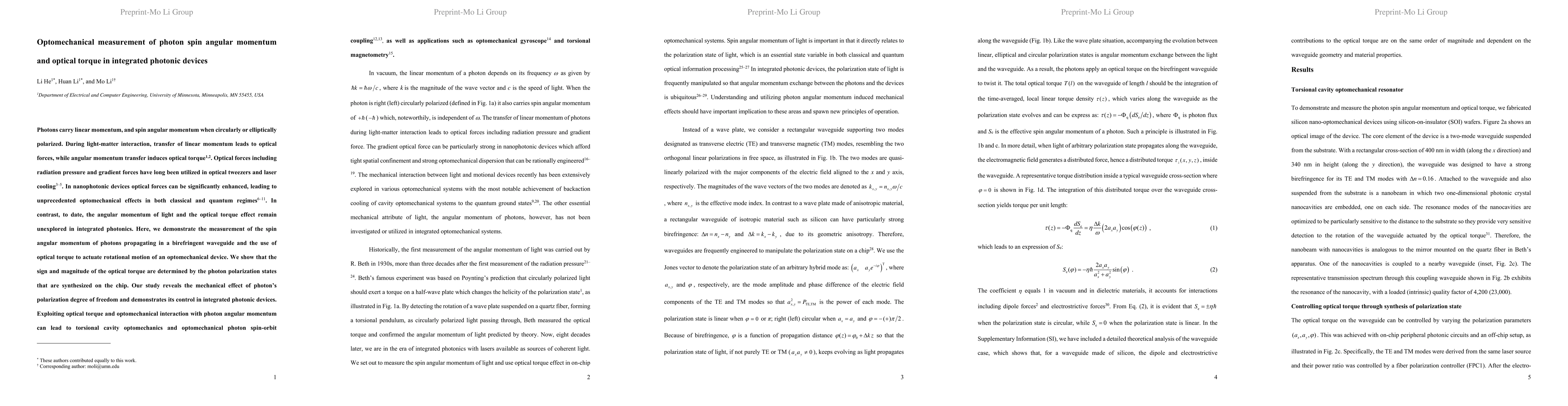This paper demonstrates the measurement of photon spin angular momentum in birefringent waveguides and uses optical torque to rotate optomechanical devices, showing control over the polarization states. The study opens pathways for torsional cavity optomechanics and applications like optomechanical gyroscopes.
