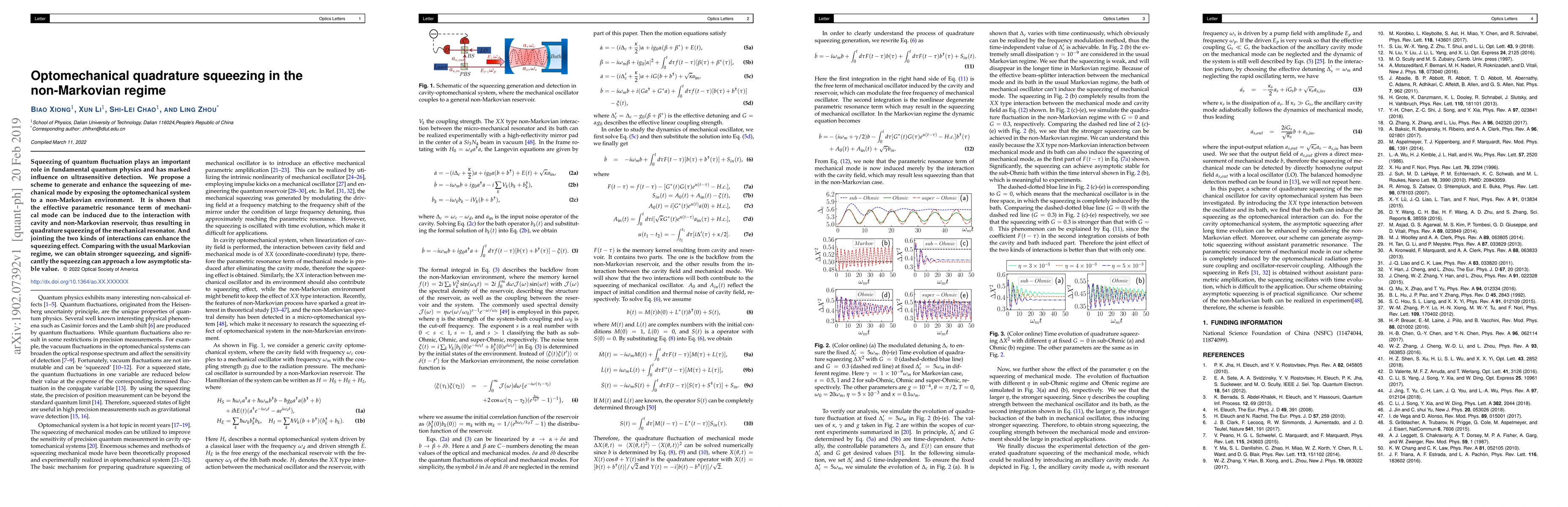 This paper proposes a scheme to generate enhanced quadrature squeezing in the mechanical mode of an optomechanical system by utilizing non-Markovian environmental interactions. The study demonstrates that combining parametric resonance and non-Markovian effects can lead to stronger squeezing compared to the usual Markovian regime, approaching a stable low asymptotic value.