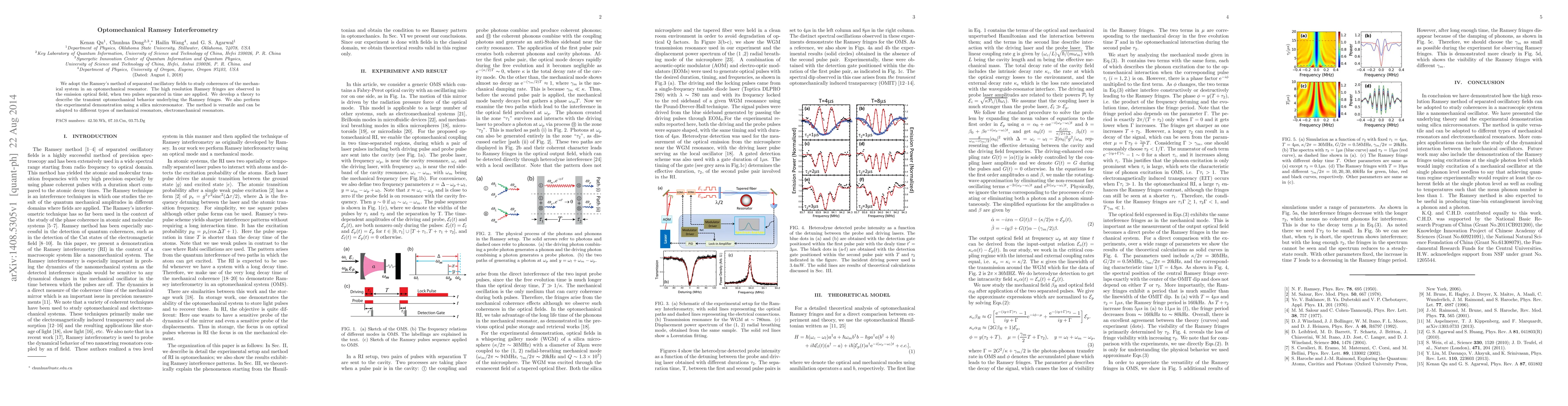 This paper employs Ramsey interferometry to study the coherence of mechanical systems in optomechanical resonators, observing high-resolution fringes in the optical field. The authors develop a theoretical framework to explain the transient optomechanical behavior and demonstrate the method experimentally using a silica microresonator.