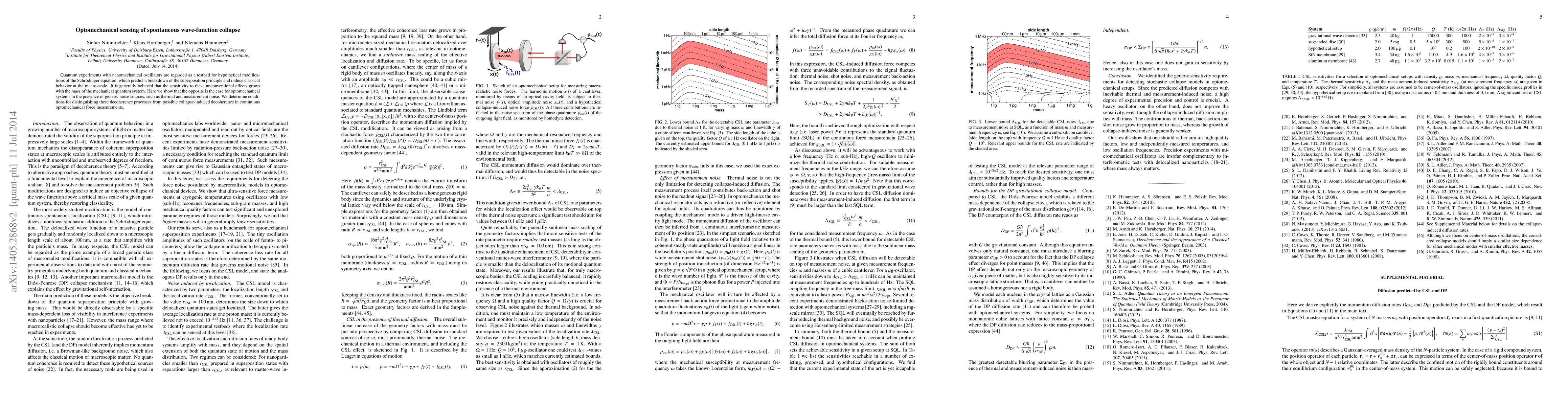 Quantum experiments with nanomechanical oscillators are regarded as a testbed for hypothetical modifications of the Schr\"{o}dinger equation, which predict a breakdown of the superposition principle and induce classical behavior at the macro-scale. It is generally believed that the sensitivity to these unconventional effects grows with the mass of the mechanical quantum system. Here we show that the opposite is the case for optomechanical systems in the presence of generic noise sources, such as thermal and measurement noise. We determine conditions for distinguishing these decoherence processes from possible collapse-induced decoherence in continuous optomechanical force measurements.