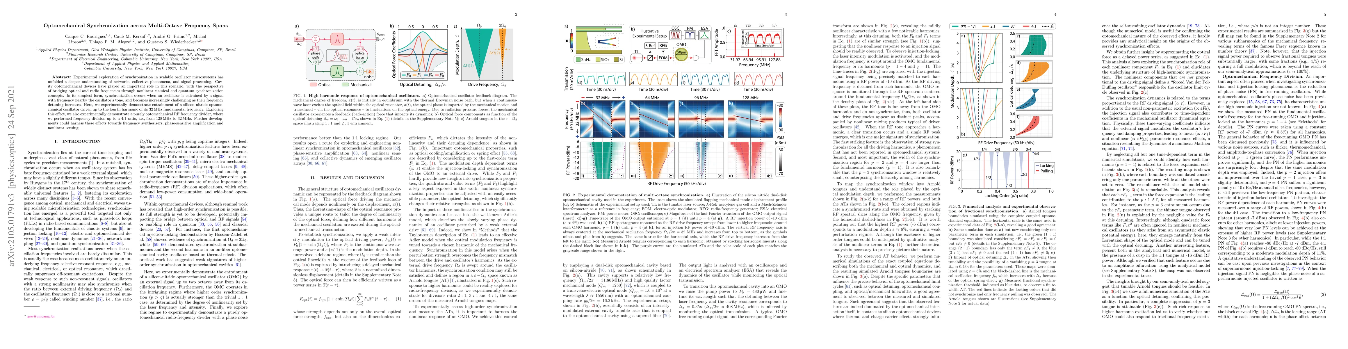 This paper demonstrates optomechanical synchronization in scalable oscillator micro systems, achieving entrainment up to the fourth harmonic of a 32 MHz fundamental frequency. It also presents the first optomechanical RF frequency divider, achieving a 4:1 ratio, with potential applications in frequency synthesizers and nonlinear sensing.