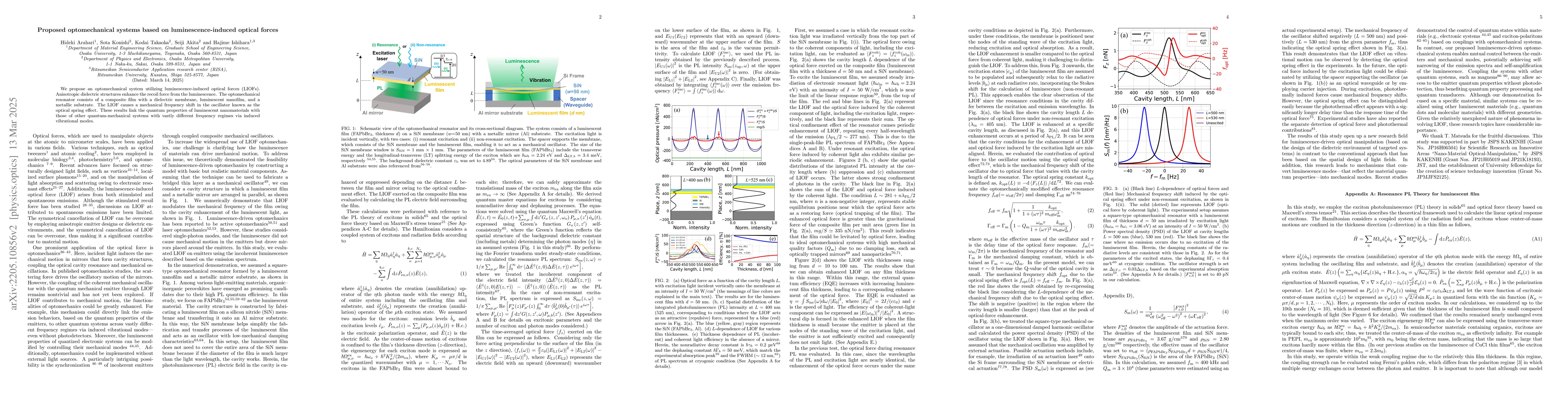 Optical force, which is generated by the exchange of momentum between light and matter, has been applied in a wide range of fields including molecular biology, photochemistry, and optomechanics as a technique to manipulate small objects for atomic and micro-sized regimes. So far, the main approach for various optical manipulations has been the geometric design of the irradiated light, such as optical vortices and localized surface plasmons. On the other hand, luminescence from materials should also act as optical force, which we call luminescence-induced optical force (LiOF). LiOF occurs by designing an anisotropic dielectric environment surrounding an isotropic emitter. In this paper, as a model, we assumed a Fabry-Perot cavity structure in which a luminescent nanofilm is placed parallel to a metallic mirror. Then, we theoretically calculated the LiOF and revealed that the LiOF could drive the vibrational motion of the film. This mechanism will provide new insights into developing unconventional optomechanics.