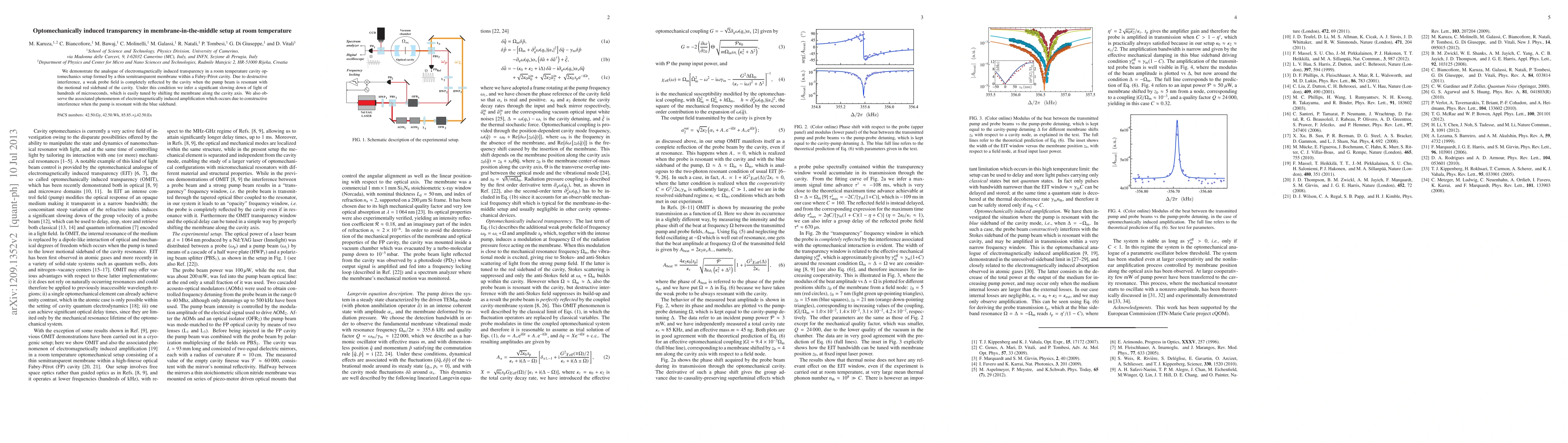 We demonstrate the analogue of electromagnetically induced transparency in a room temperature cavity optomechanics setup formed by a thin semitransparent membrane within a Fabry-P\'erot cavity. Due to destructive interference, a weak probe field is completely reflected by the cavity when the pump beam is resonant with the motional red sideband of the cavity. Under this condition we infer a significant slowing down of light of hundreds of microseconds, which is easily tuned by shifting the membrane along the cavity axis. We also observe the associated phenomenon of electromagnetically induced amplification which occurs due to constructive interference when the pump is resonant with the blue sideband.