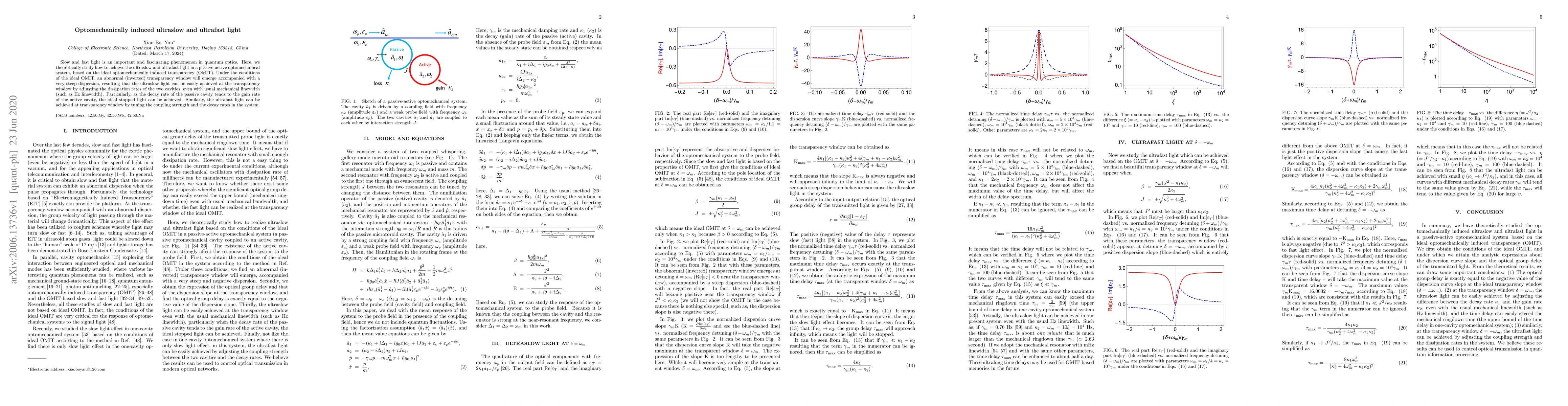 Slow and fast light is an important and fascinating phenomenon in quantum optics. Here, we theoretically study how to achieve the ultraslow and ultrafast light in a passive-active optomechanical system, based on the ideal optomechanically induced transparency (OMIT). Under the conditions of the ideal OMIT, an abnormal (inverted) transparency window will emerge accompanied with a very steep dispersion, resulting that the ultraslow light can be easily achieved at the transparency window by adjusting the dissipation rates of the two cavities, even with usual mechanical linewidth (such as Hz linewidth). Particularly, as the decay rate of the passive cavity tends to the gain rate of the active cavity, the ideal stopped light can be achieved. Similarly, the ultrafast light can be achieved at transparency window by tuning the coupling strength and the decay rates in the system.