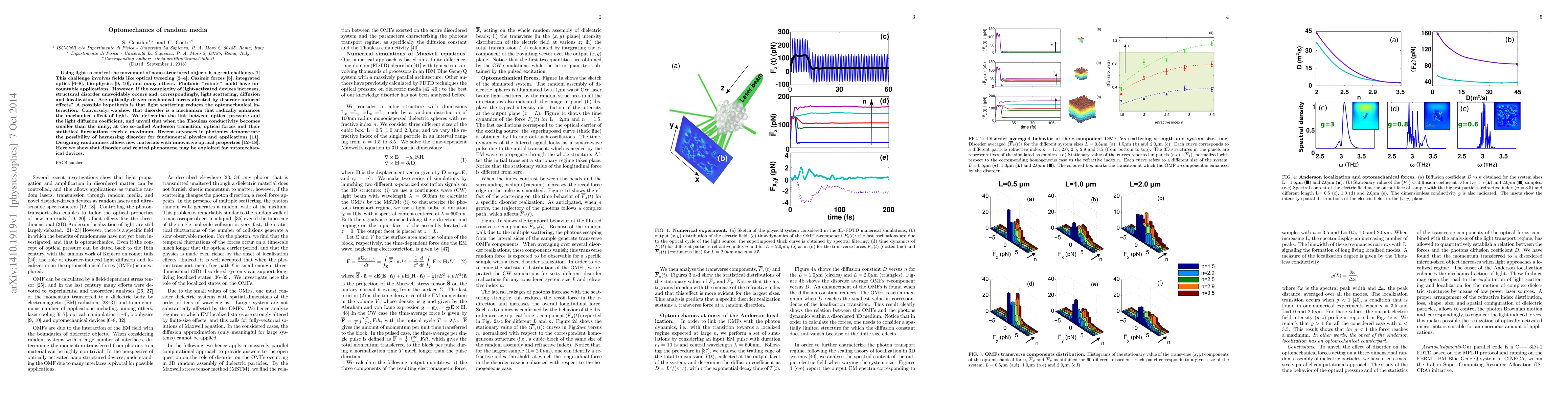 Using light to control the movement of nano-structured objects is a great challenge. This challenge involves fields like optical tweezing, Casimir forces, integrated optics, bio-physics, and many others. Photonic "robots" could have uncountable applications. However, if the complexity of light-activated devices increases, structural disorder unavoidably occurs and, correspondingly, light scattering, diffusion and localization. Are optically-driven mechanical forces affected by disorder-induced effects? A possible hypothesis is that light scattering reduces the optomechanical interaction. Conversely, we show that disorder is a mechanism that radically enhances the mechanical effect of light. We determine the link between optical pressure and the light diffusion coefficient, and unveil that when the Thouless conductivity becomes smaller than the unity, at the so-called Anderson transition, optical forces and their statistical fluctuations reach a maximum. Recent advances in photonics demonstrate the possibility of harnessing disorder for fundamental physics and applications. Designing randomness allows new materials with innovative optical properties. Here we show that disorder and related phenomena may be exploited for optomechanical devices.