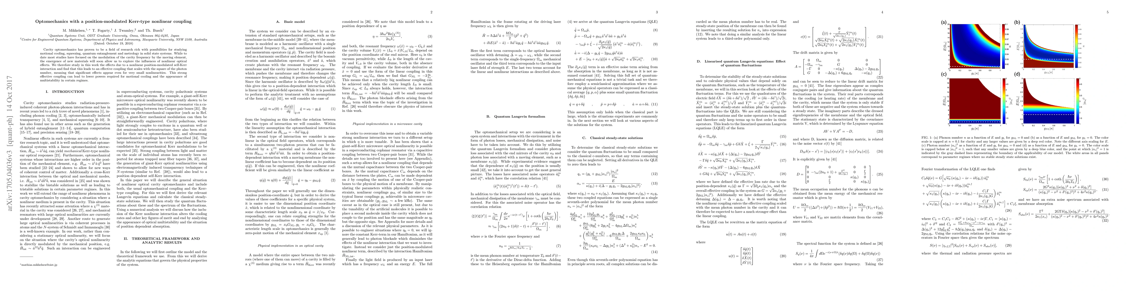 This paper explores the optomechanical effects of a position-modulated Kerr-type nonlinear coupling in cavity optomechanics, revealing that it results in an effective coupling scaling with the square of the photon number, potentially reducing required power for motional cooling and introducing multi-stability.
