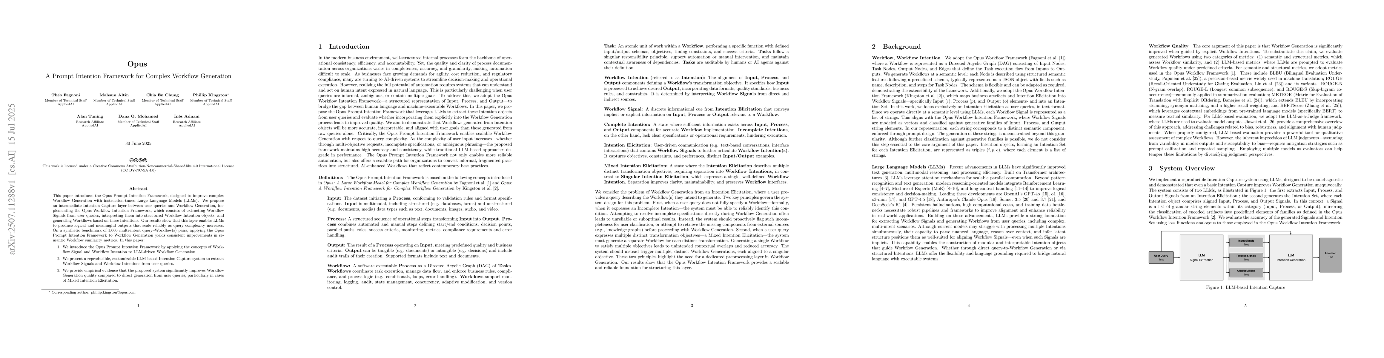 The Opus Prompt Intention Framework presents a customizable LLM-based Intention Capture system for extracting Workflow Signals and Intentions from user queries, improving Workflow Generation quality.
