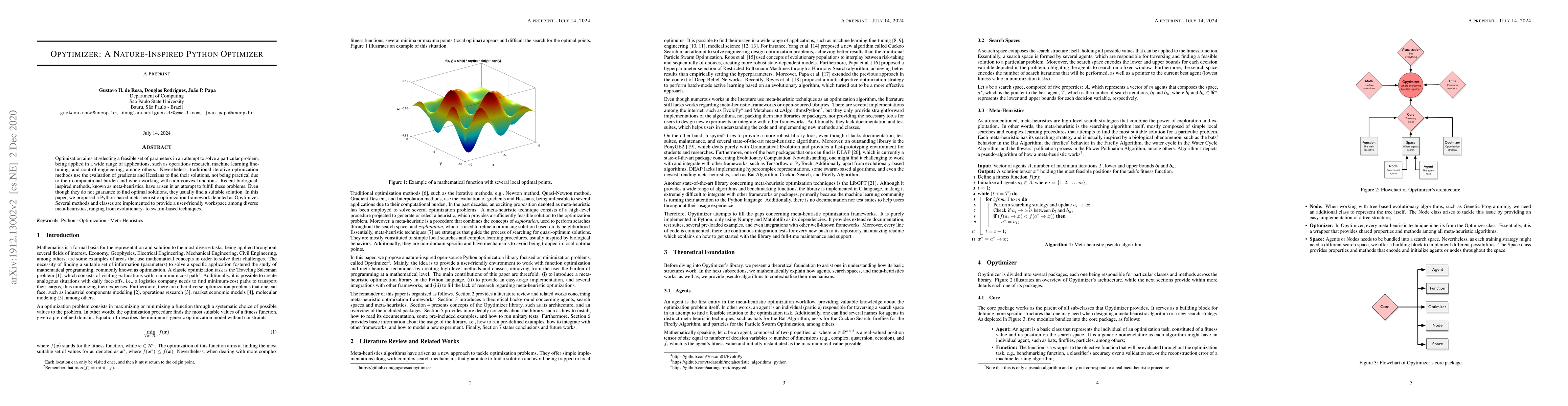 Optimization aims at selecting a feasible set of parameters in an attempt to solve a particular problem, being applied in a wide range of applications, such as operations research, machine learning fine-tuning, and control engineering, among others. Nevertheless, traditional iterative optimization methods use the evaluation of gradients and Hessians to find their solutions, not being practical due to their computational burden and when working with non-convex functions. Recent biological-inspired methods, known as meta-heuristics, have arisen in an attempt to fulfill these problems. Even though they do not guarantee to find optimal solutions, they usually find a suitable solution. In this paper, we proposed a Python-based meta-heuristic optimization framework denoted as Opytimizer. Several methods and classes are implemented to provide a user-friendly workspace among diverse meta-heuristics, ranging from evolutionary- to swarm-based techniques.