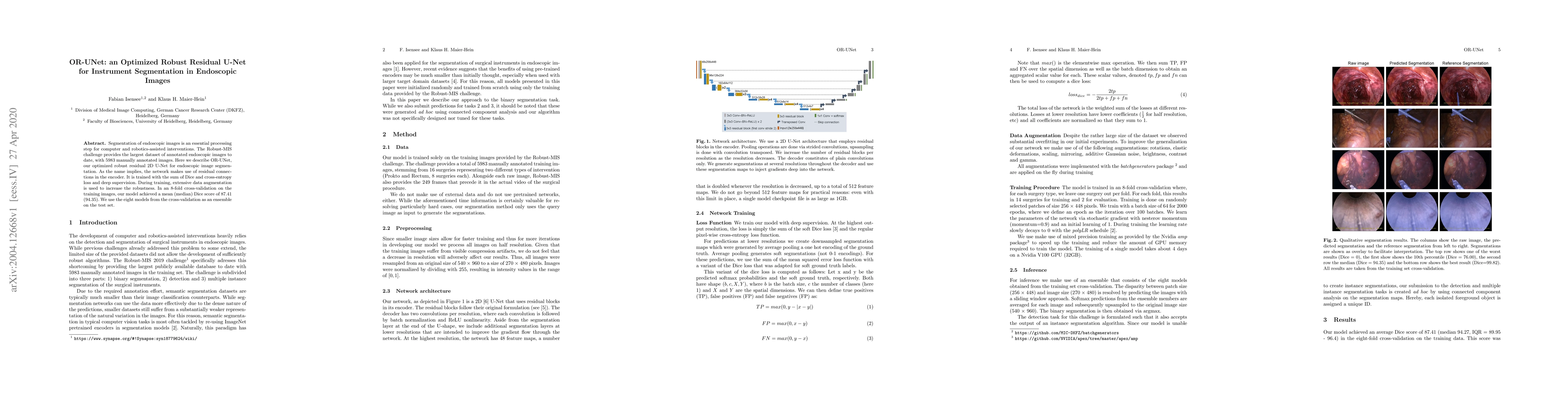 OR-UNet is an optimized robust residual U-Net for segmenting instruments in endoscopic images. It achieves high segmentation accuracy with a mean Dice score of 87.41, leveraging residual connections, deep supervision, and extensive data augmentation.